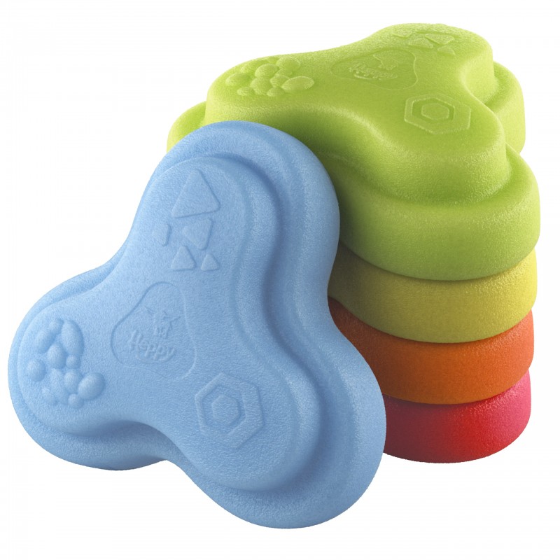 BIG Heppy Kamienie sensoryczne to zestaw 5 lekkich i trwałych kamieni, które zapewniają dzieciom kreatywną zabawę i rozwój sensoryczny. Dzięki różnym strukturom kamienie pozwalają dotykać, balansować i budować własne konstrukcje. Ich wyjątkowa lekkość (120 g każdy) i wytrzymałość umożliwiają zabawę nawet dla starszych dzieci i dorosłych – maksymalne obciążenie to 120 kg. Kamienie stymulują rozwój motoryki, percepcji i koordynacji, a przy tym inspirują wyobraźnię. Wykonane z ekologicznego materiału EPP, są łatwe w czyszczeniu i nadają się do recyklingu.