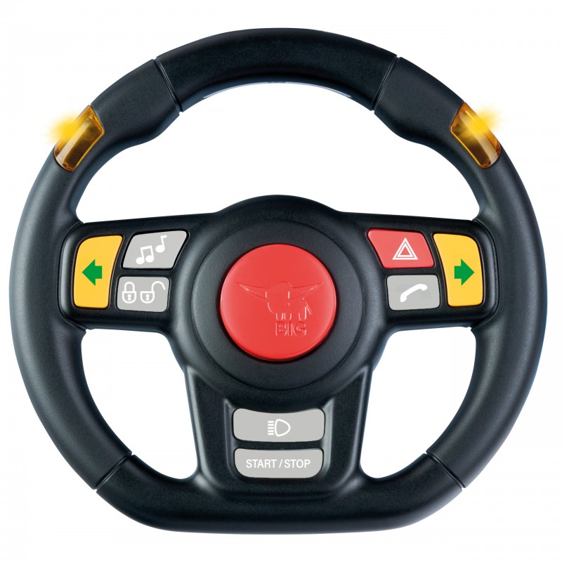 BIG Bobby Car Racing to rozbudowana kierownica z efektami świetlnymi i dźwiękowymi, która zamienia zwykłą zabawę w prawdziwy wyścig pełen emocji. Wyposażona w LED-owe światła awaryjne, kierunkowskazy oraz przednie reflektory, zapewnia realistyczne wrażenia jak w prawdziwym aucie. Elektroniczny klakson, radio z piosenką BIG Bobby Car oraz telefon sprawiają, że dziecko może wcielić się w rolę prawdziwego kierowcy. Centralny zamek i przycisk startowy z oryginalnym dźwiękiem silnika dodatkowo podnoszą realizm zabawy. To idealne akcesorium do jeździka BIG Bobby Car, które przenosi dziecięcą motoryzację na wyższy poziom.