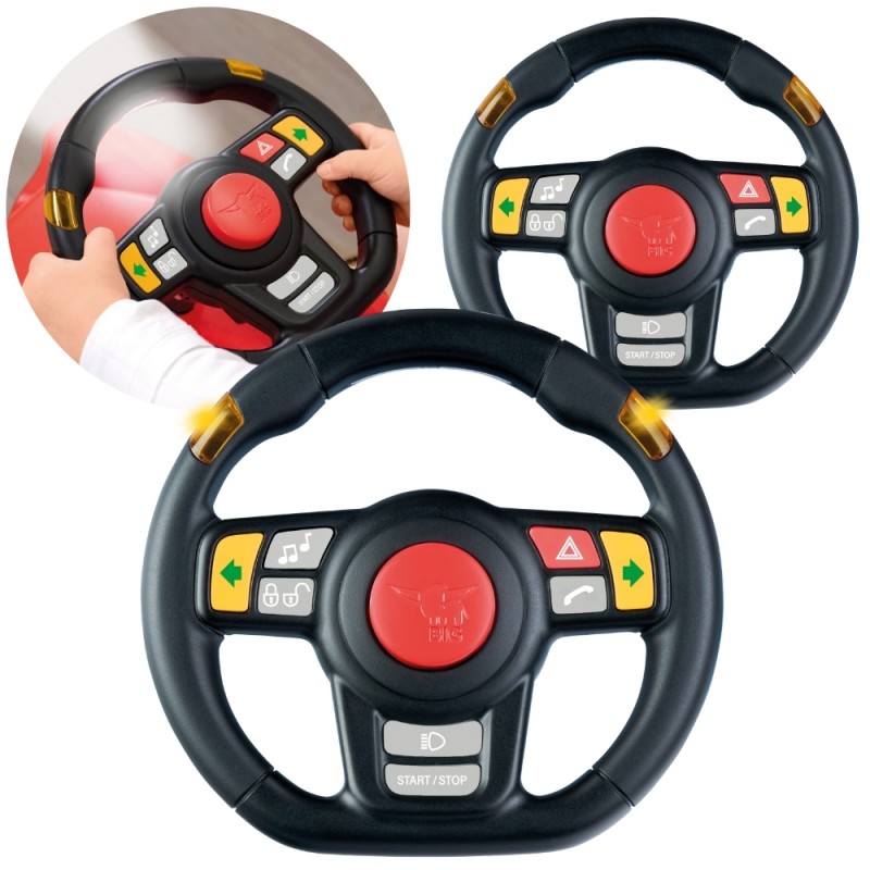 BIG Bobby Car Racing to rozbudowana kierownica z efektami świetlnymi i dźwiękowymi, która zamienia zwykłą zabawę w prawdziwy wyścig pełen emocji. Wyposażona w LED-owe światła awaryjne, kierunkowskazy oraz przednie reflektory, zapewnia realistyczne wrażenia jak w prawdziwym aucie. Elektroniczny klakson, radio z piosenką BIG Bobby Car oraz telefon sprawiają, że dziecko może wcielić się w rolę prawdziwego kierowcy. Centralny zamek i przycisk startowy z oryginalnym dźwiękiem silnika dodatkowo podnoszą realizm zabawy. To idealne akcesorium do jeździka BIG Bobby Car, które przenosi dziecięcą motoryzację na wyższy poziom.