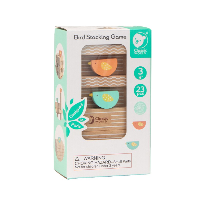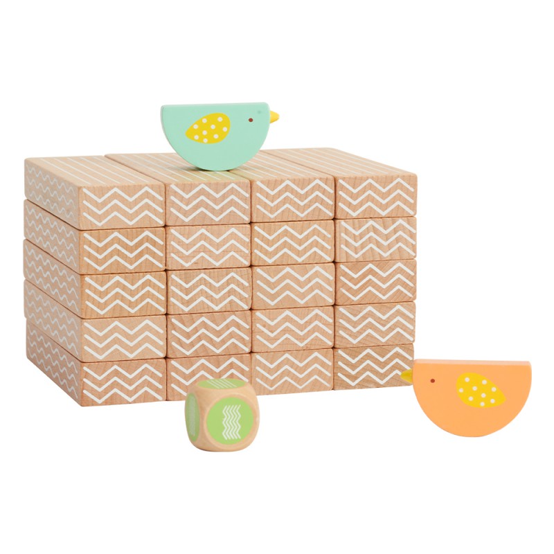 Drewniana gra edukacyjna od marki CLASSIC WORLD pozwala bawić się maluchom w wiele wyjątkowych gier - tylko wyobraźnia jest ograniczeniem! Gra składa się z 20 prostokątnych klocków, 2 figurek ptaków oraz kostki do gry, wszystkie wykonane z drewna bukowego. Zabawkę można wykorzystać do różnych gier i zabaw. Jedną z najbardziej popularnych jest Zabawa w krzywą wierzę - to popularna gra zręcznościowa, polegająca na wyciąganiu drewnianych klocków z wieży i układaniu ich na jej szczycie, bez spowodowania zawalenia konstrukcji.