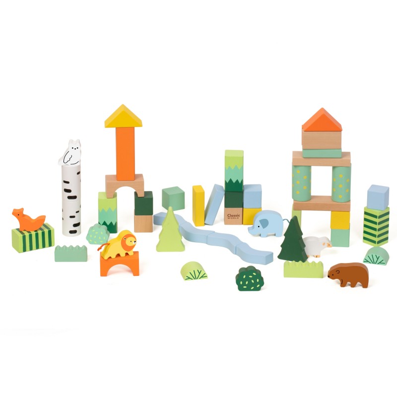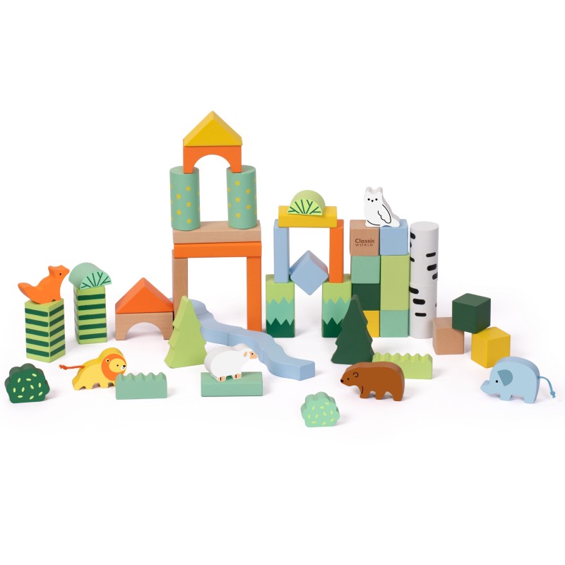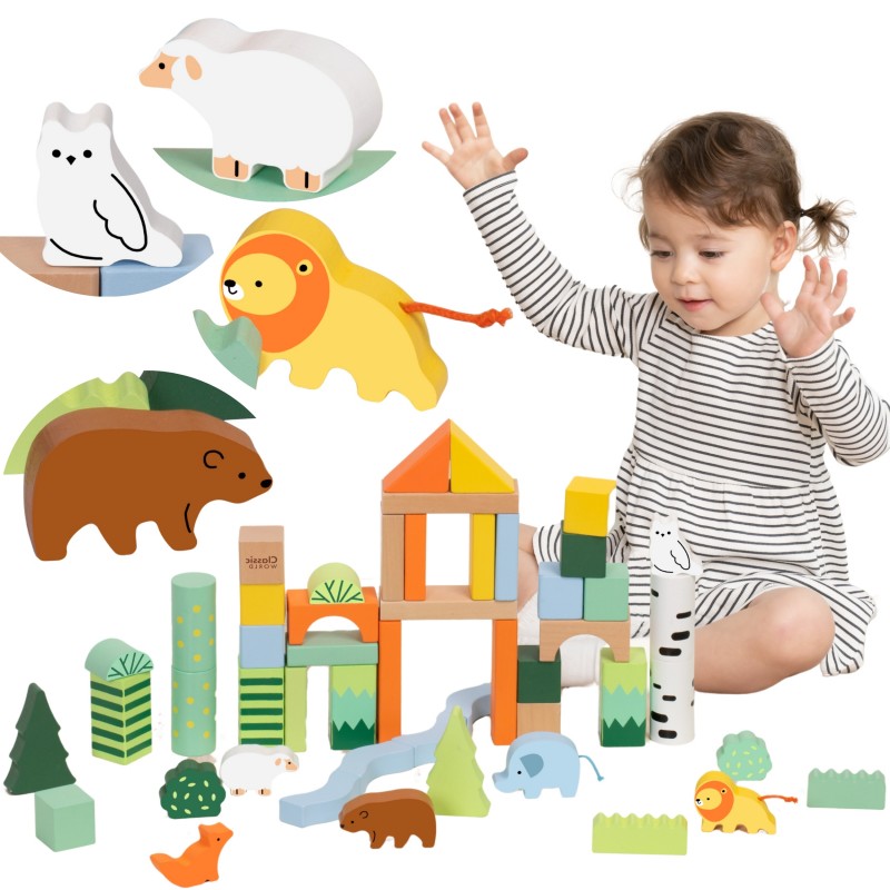 Zestaw Forest Blocks od marki Classic World to wyjątkowa propozycja dla małych konstruktorów, inspirowana pięknem natury. Te drewniane klocki pozwalają dziecku na stworzenie własnego, tętniącego życiem lasu. Komplet składa się z różnorodnych kształtów i kolorów, a główną atrakcją są urocze wizerunki zwierząt, takich jak lwy, niedźwiedzie brunatne, lisy, sowy, owce czy słonie. Zabawka została zaprojektowana w Paryżu i wykonana z dbałością o detale, co potwierdza certyfikat FSC (drewno z odpowiedzialnych źródeł). Dzięki temu zestawowi maluchy mogą godzinami budować scenerie, co stymuluje ich chęć odkrywania świata i zapewnia bezpieczną zabawę.