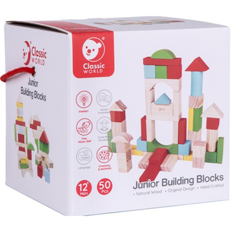 CLASSIC WORLD Drewniane Klocki Dla Dzieci 50 elementów