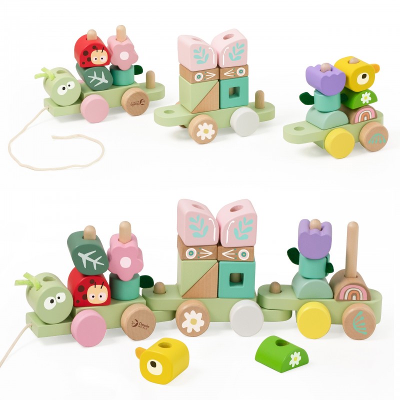 Drewniana Kolejka Gąsienica od Classic World to zabawka w pięknych pastelowych kolorach,która nie tylko cieszy oko naszych pociech, ale także rozwija wyobraźnię, koordynację i zdolności manualne.Motyw dżungli wprowadza dzieci w świat przyrody, uczy je o zwierzętach, roślinach i owadach, rozwija zainteresowanie przyrodą i świadomość ekologiczną.Dzieci mogą dowolnie mieszać i dopasowywać te elementy, tworząc wciągające i żywe doświadczenie inspirowane dżunglą. Jeśli stawiasz na dobry rozwój swojego dziecka powinieneś wiedzieć, że Kolejka Gąsienica wspiera rozwój małej motoryki - motoryką małą określa się ruchy palców i dłoni. Są to ruchy angażujące niewielką część ciała, jednakże wymagające koncentracji uwagi oraz skupienia na wykonywanej czynności. Zabawka wykonana jest z wysokiej jakości drewna. Kolejną zaletą jest gładko oszlifowana, przyjemna w dotyku powierzchnia, zapewni ona BEZPIECZNĄ zabawę dziecka. Kolejka Gąsienica ma także funkcję ciągnięcia za dołączony sznureczek- twoje dziecko na pewno nie będzie się nudzić!