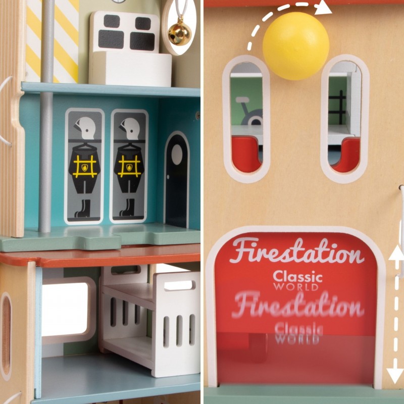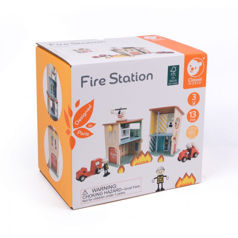 Zestaw Classic World Remiza Strażacka 13el. to wspaniała zabawka, która przeniesie Twoje dziecko w świat bohaterskich strażaków i emocjonujących akcji ratunkowych! Wykonany z naturalnego drewna, ten zestaw zachwyca swoją jakością i dbałością o detale. Remiza strażacka została zaprojektowana w Paryżu, co gwarantuje jej unikalny styl i funkcjonalność. Dzięki różnym konfiguracjom i otwieranym drzwiom, dziecko może swobodnie manipulować elementami, tworząc własne scenariusze. Zabawka jest idealna do rozwijania wyobraźni, zdolności językowych oraz małej motoryki, zapewniając godziny kreatywnej zabawy.