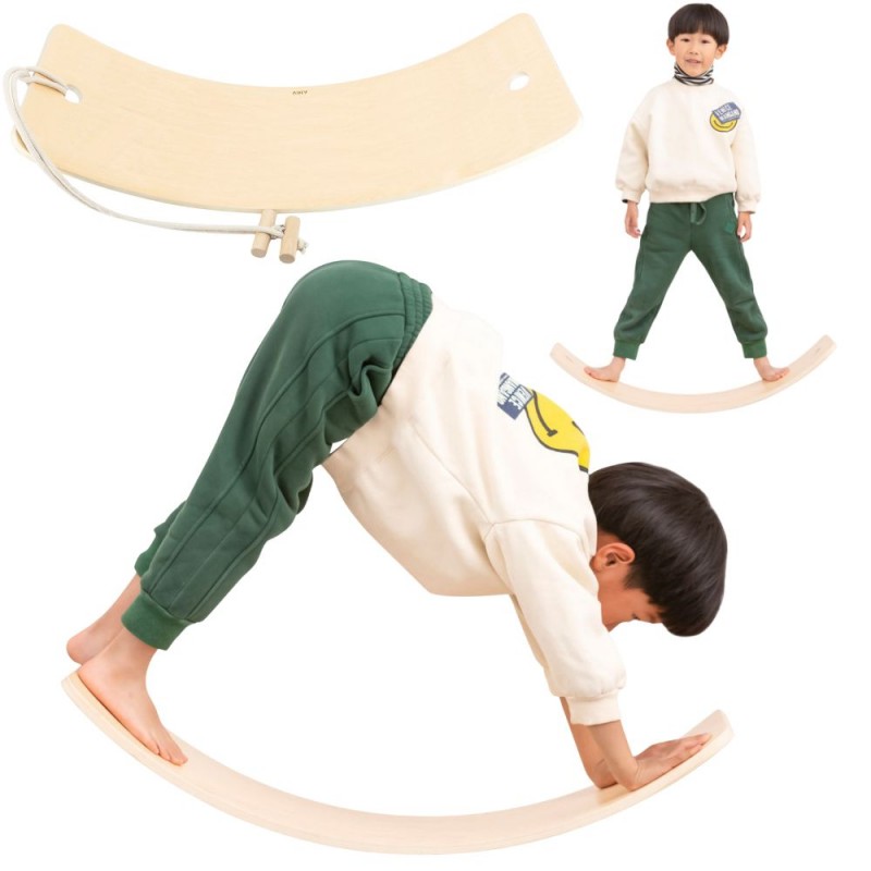 ✔️ Zadaniem dziecka jest balansowanie na desce, by jednocześnie zachować równowagę.