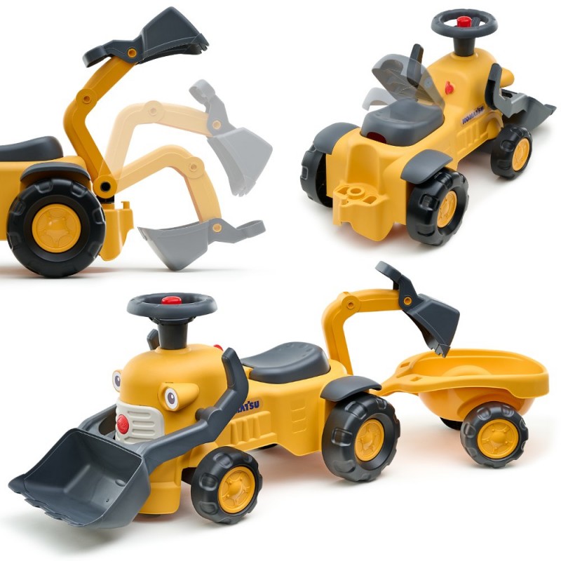Mały traktor Komatsu od marki Falk to idealny prezent dla dzieci od 12 miesiąca życia. Ten uroczy jeździk w stylu vintage jest pełen niespodzianek i funkcji, które zachwycą każdego malucha. Zestaw jest niezwykle wszechstronny – wyposażony w przednią łyżkę, tylną koparkę oraz odczepianą przyczepkę, co czyni go doskonałym towarzyszem zabaw w ogrodzie, na plaży czy w piaskownicy. Pojazd nie tylko bawi, ale też wspiera rozwój dziecka dzięki obrotowej kierownicy z klaksonem oraz małej dźwiękowej stacyjce (klikającej), które stymulują zmysł słuchu i zachęcają do interakcji. Produkt jest hołdem dla 75 lat doświadczenia marki i patrzeniem w przyszłość – został wyprodukowany całkowicie we Francji i składa się w co najmniej 90% z plastiku pochodzącego z recyklingu. To wspaniały sposób na wprowadzenie dziecka w świat świadomości ekologicznej przy jednoczesnym zapewnieniu bezpiecznej i kreatywnej zabawy.
