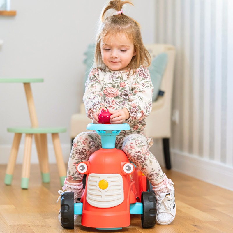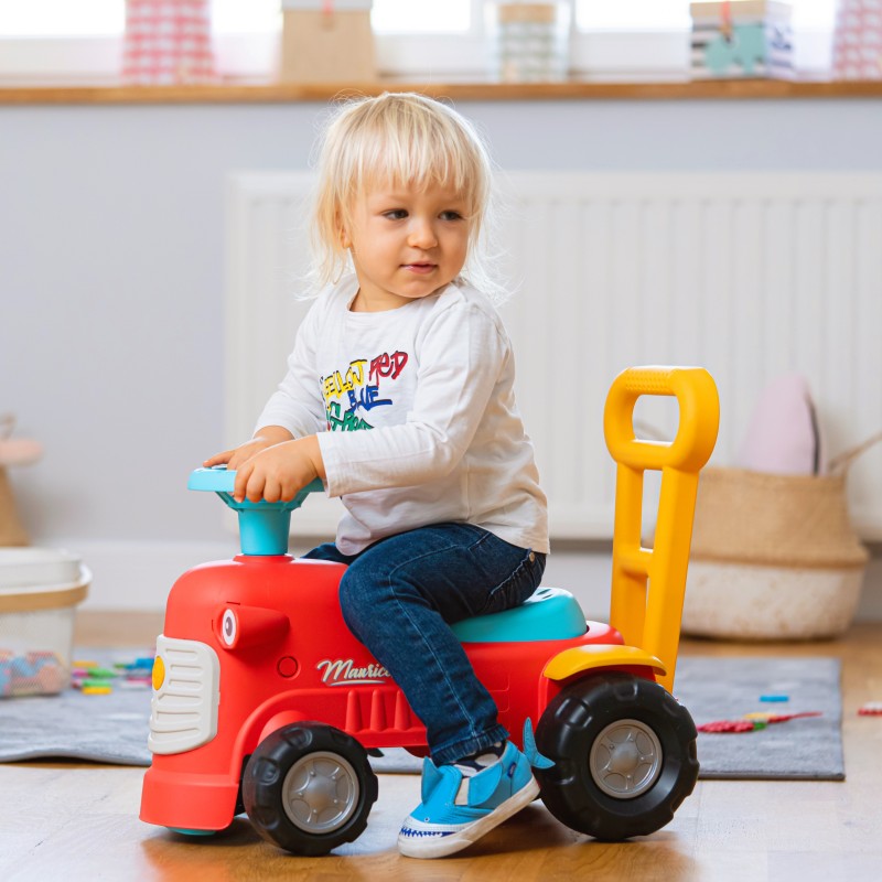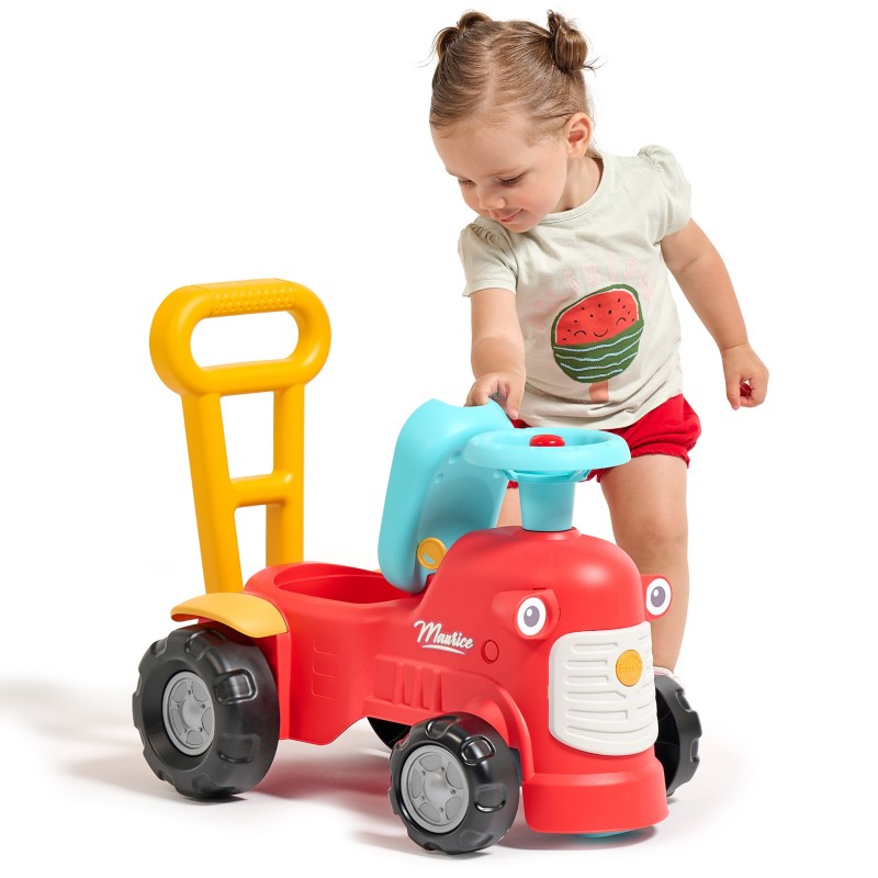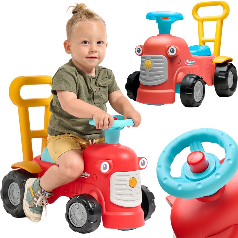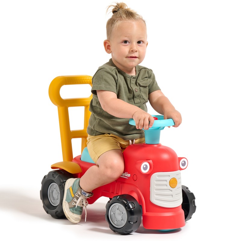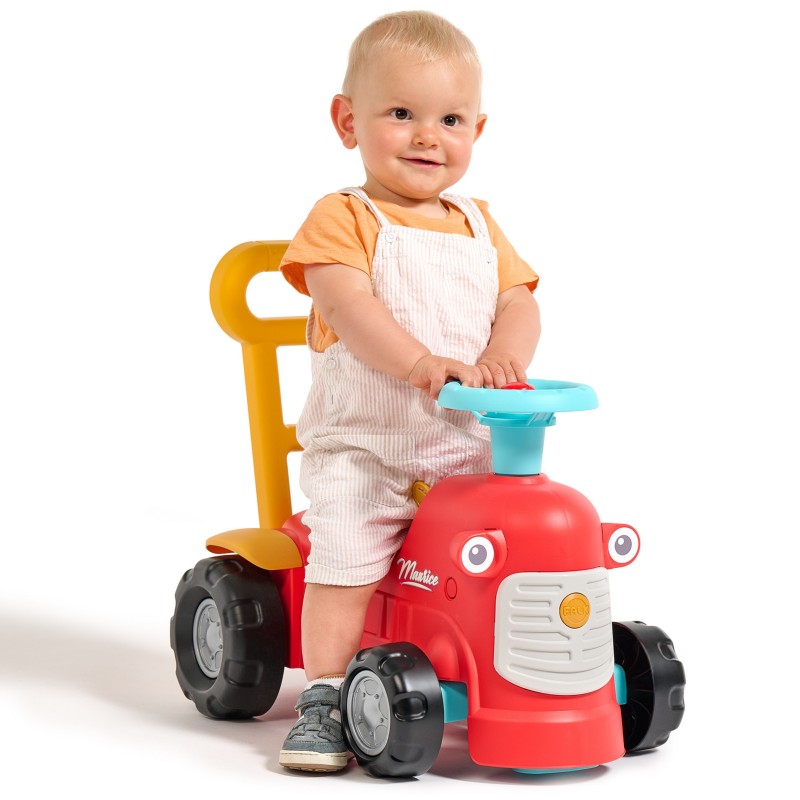 Uroczy i pełen pomysłowości jeździk traktorek Maurice w odcieniu koralowej czerwieni to idealny towarzysz dla dzieci od 12 miesięcy, wspierający je aż do stawiania pierwszych kroków. Dzięki ergonomicznej rączce do pchania zabawka świetnie pomaga maluchom w nauce chodzenia. Ten wyjątkowy pojazd został wyprodukowany we Francji z wykorzystaniem ponad 90% plastiku pochodzącego z recyklingu. Posiada kierownicę wyposażoną w klakson oraz klikający kluczyk dźwiękowy, co gwarantuje mnóstwo angażującej zabawy i stymulacji dla najmłodszych.