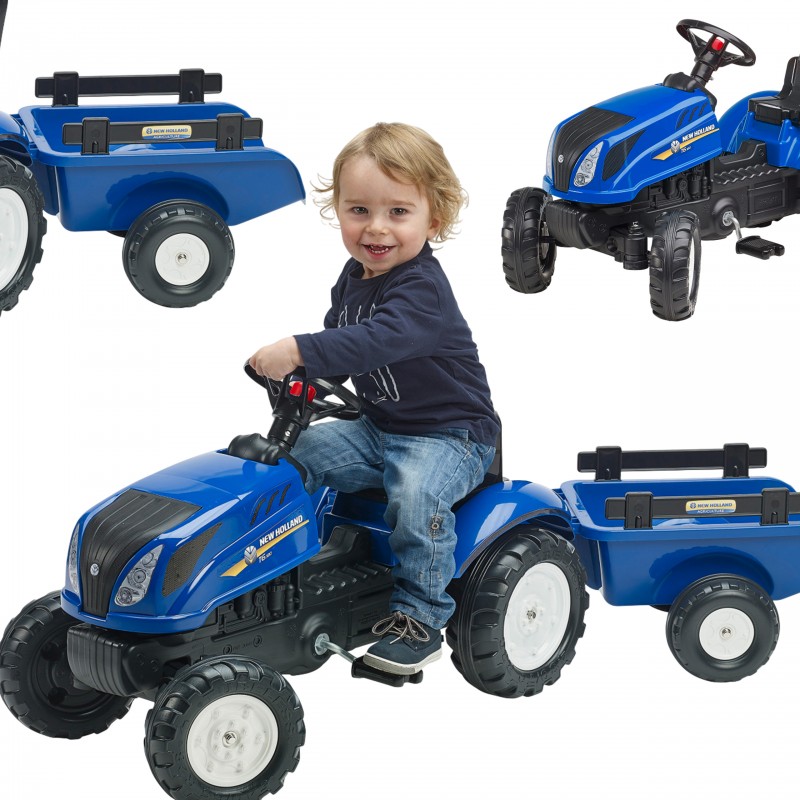 FALK Traktor na Pedały New Holland Duży z Przyczepką + Otwierana