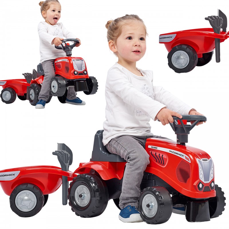 FALK Traktorek Baby Mac Cormick Czerwony z Przyczepką + akc. od