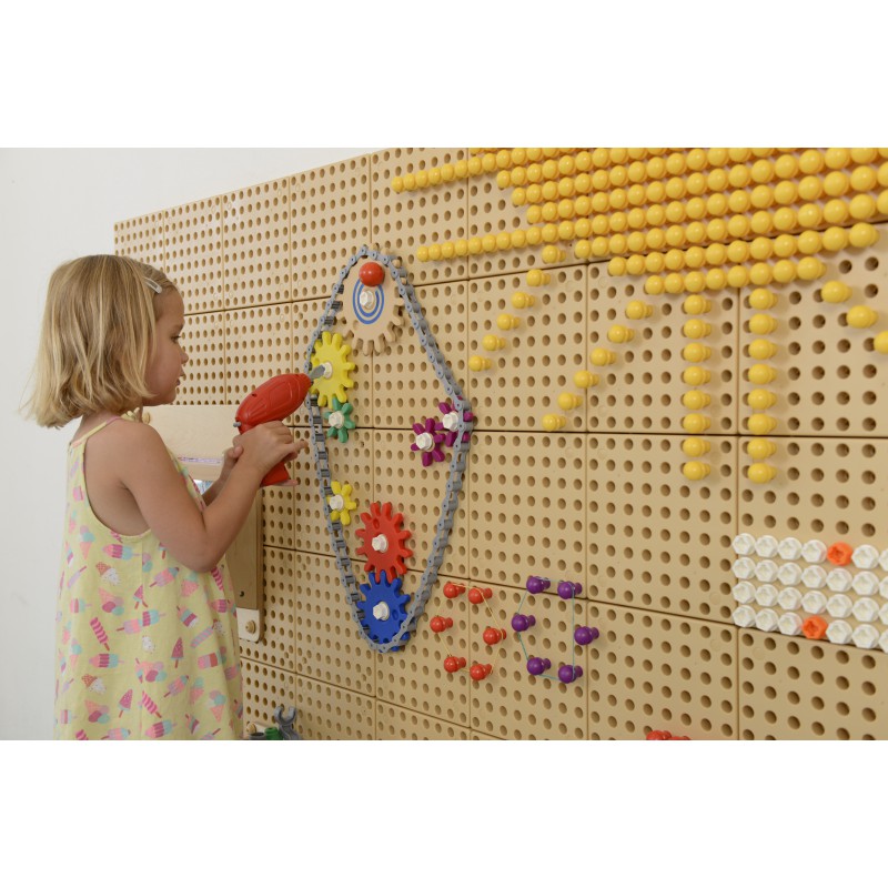 Zestaw kolorowych trybików i kół zębatych, które pozwalają na skonstruowanie skomplikowanych mechanizmów. Zabawkę montuje się na Tablicy Naukowo-Kreatywnej Masterkidz STEM przy pomocy specjalnych śrub Masterkidz. Zabawa kołami zębatymi poprawia motorykę dziecka, zdolność logicznego myślenia, a także kreatywność.