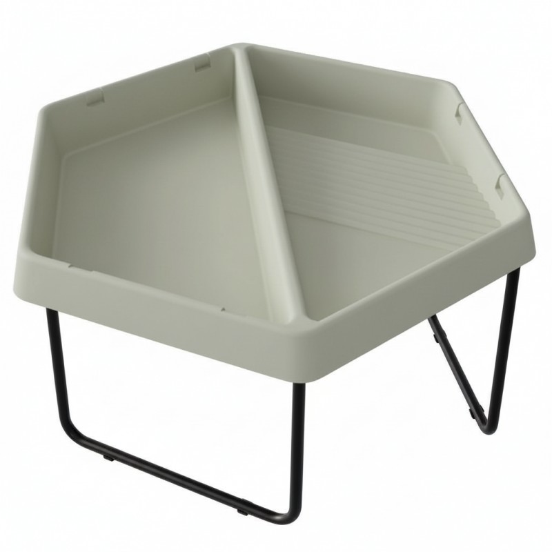Sześciokątna taca sensoryczna z dwoma komorami marki Masterkidz to prawdziwe centrum eksperymentów dla małych odkrywców – może leżeć bezpośrednio na podłodze lub zostać umieszczona na regulowanym stelażu, dopasowanym do wzrostu dzieci. Dzięki możliwości jednoczesnego wykorzystania różnych materiałów (np. piasek, makaron, masa plastyczna) maluchy mogą porównywać ich właściwości, bawić się wspólnie i odkrywać świat nauki poprzez dotyk, obserwację i zabawę.