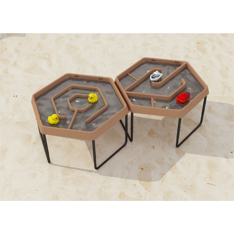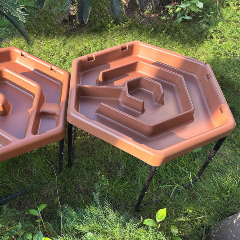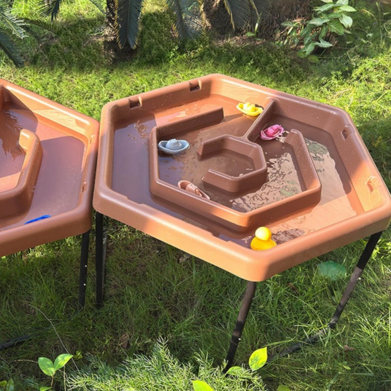 Sześciokątny stolik labirynt wodny marki Masterkidz to niezwykłe miejsce do zabawy, w którym dzieci mogą puszczać łódki i kaczuszki po zakręconych kanałach, obserwując, jak woda płynie i zmienia kierunek. Stabilny metalowy stelaż z regulacją wysokości oraz taca z torami wodnymi tworzą atrakcyjne, przestrzenne miejsce do eksperymentów, zabaw tematycznych i wspólnej rozrywki.