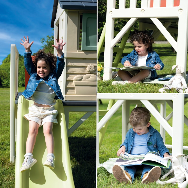 Smoby Life Domek ogrodowy na palach ze zjeżdżalnią to wymarzone miejsce do zabawy dla maluchów od 2. roku życia. Dzięki podwyższonej konstrukcji, zjeżdżalni i stylowym okiennicom, dzieci mogą aktywnie spędzać czas, rozwijać wyobraźnię i cieszyć się zabawą na świeżym powietrzu. To doskonały wybór na wspólne zabawy z rodzeństwem i przyjaciółmi. Domek ten to wyjątkowa przestrzeń do zabawy, która łączy ekologiczną produkcję, estetyczny wygląd i mnóstwo radości dla dzieci!