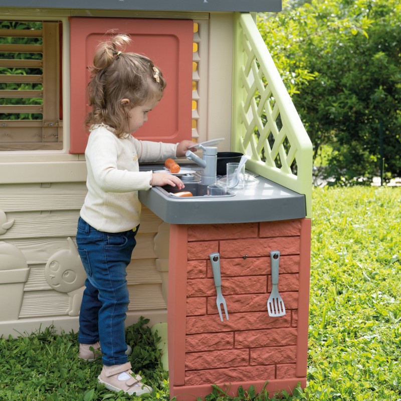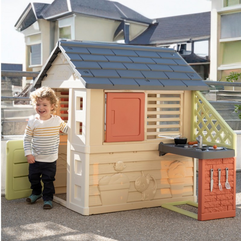 Smoby Domek ogrodowy Nature z kuchnią to doskonałe miejsce do wspólnej zabawy na świeżym powietrzu. Dzięki przestronnej konstrukcji, maluchy mogą zaprosić przyjaciół i cieszyć się wspólną zabawą w ogrodzie. Jego stonowane kolory sprawiają, że idealnie wpasowuje się w każdą przestrzeń, tworząc harmonijną atmosferę w Twoim ogrodzie.