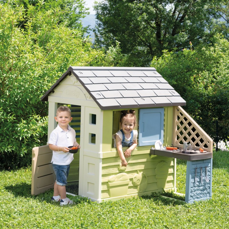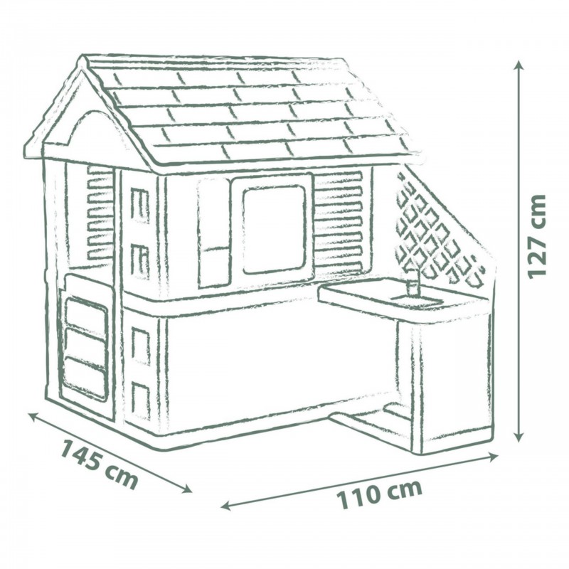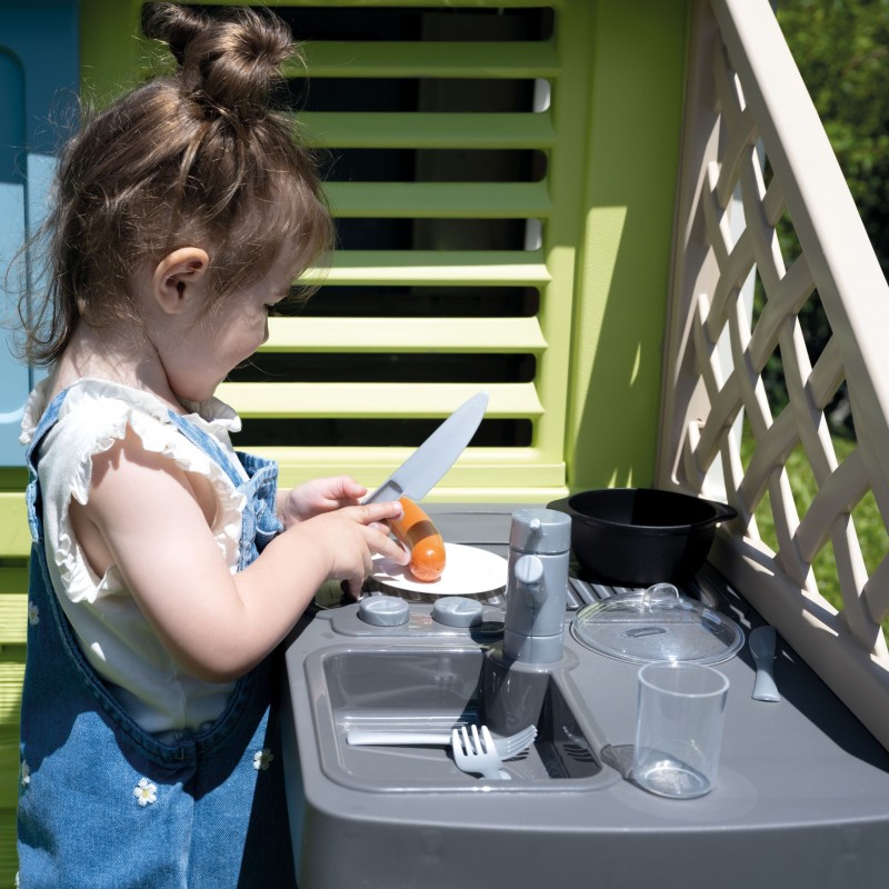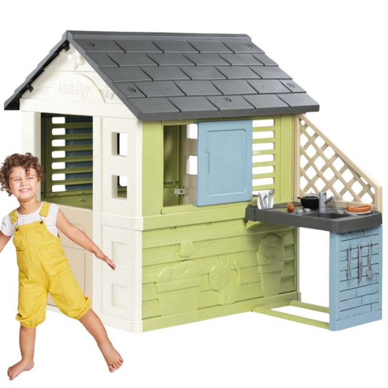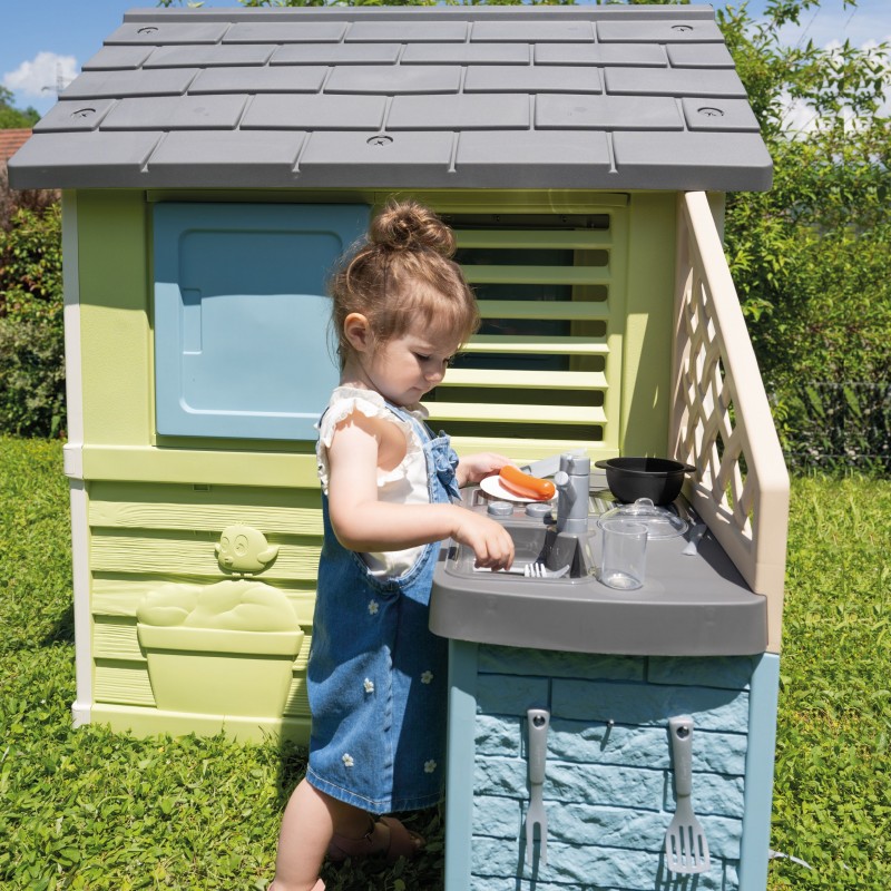 Smoby Life Domek PRETTY z kuchnią to idealne miejsce do kreatywnej i bezpiecznej zabawy na świeżym powietrzu już od 2. roku życia. Duża przestrzeń, otwierane okiennice i stylowe detale sprawiają, że dzieci chętnie zapraszają do zabawy rodzeństwo i przyjaciół. Aneks kuchenny z grillem i zlewem pozwala wcielać się w role gospodarzy lub restauratorów. Solidna konstrukcja i powłoka ANTI-UV gwarantują trwałość na lata, nawet przy intensywnym użytkowaniu w ogrodzie. To zabawka klasy premium, wyprodukowana we Francji, z myślą o dzieciach i środowisku.