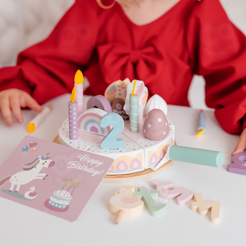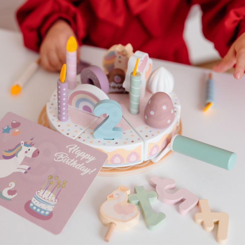 Każde dziecko marzy o tym, aby zapraszać przyjaciół na najprzyjemniejsze urodziny. Ten pięknie zaprojektowany zestaw do zabawy w tort urodzinowy oferuje coś więcej niż zwykłą zabawkę – to przepustka do świata pełnego zabawy, gdzie każdy może być gospodarzem idealnego przyjęcia. Drewniane elementy zostały starannie wykonane w łagodnych, uspokajających odcieniach, a każdy detal dodaje magii. Twoje dziecko będzie mogło urządzać setki unikalnych imprezowych scenariuszy, kształtując własne wspomnienia i reguły zabawy.