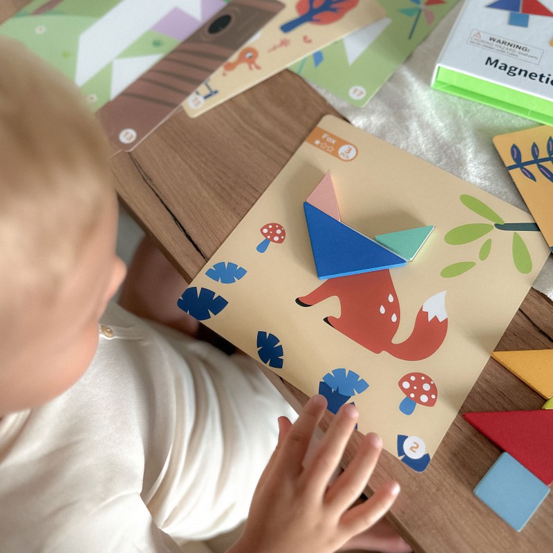 Tooky Toy Układanka Kształtów - Zapewni mnóstwo dobrej zabawy wspomagając przy tym rozwój intelektualny najmłodszych. Intensywne kolory i radosne obrazki zwierzątek sprawią, że zabawka przypadnie do gustu nawet najbardziej wymagającemu użytkownikowi. Dzięki tej zabawce nasza pociecha ma możliwość za pomocą magnetycznych figur geometrycznych dopasować odpowiednio obrazki na specjalnej platformie i układać z nich zwierzątka. Kompaktowe opakowanie sprawi, że będą idealne w podróży. Producent wybierając najwyższej jakości, ekologiczne materiały zadbał o bezpieczeństwo dzieci i środowiska.