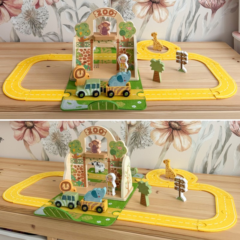 Wyobraź sobie kompletne, urocze zoo zamknięte w eleganckiej, filcowej torbie – gotowe do rozłożenia w każdym miejscu! Mini zoo marki Tooky Toy to nie tylko zabawka, to cały uniwersum przygód, które Twoje dziecko może stworzyć w domu, czy na wakacjach. Kolorowy zestaw z drewnianym wejściem w kształcie bramy zoo, kolorowe zwierzątka, pojazdy terenowe i elastyczne elementy torów zaprasza do nieskończonych możliwości zabawy. Każdy element został zaprojektowany z dbałością o szczegóły – od wesołej karetki, przez sygnalizację świetlną, aż po urocze drzewko. To miasto, które nigdy nie śpi i zawsze czeka na nowe historie!