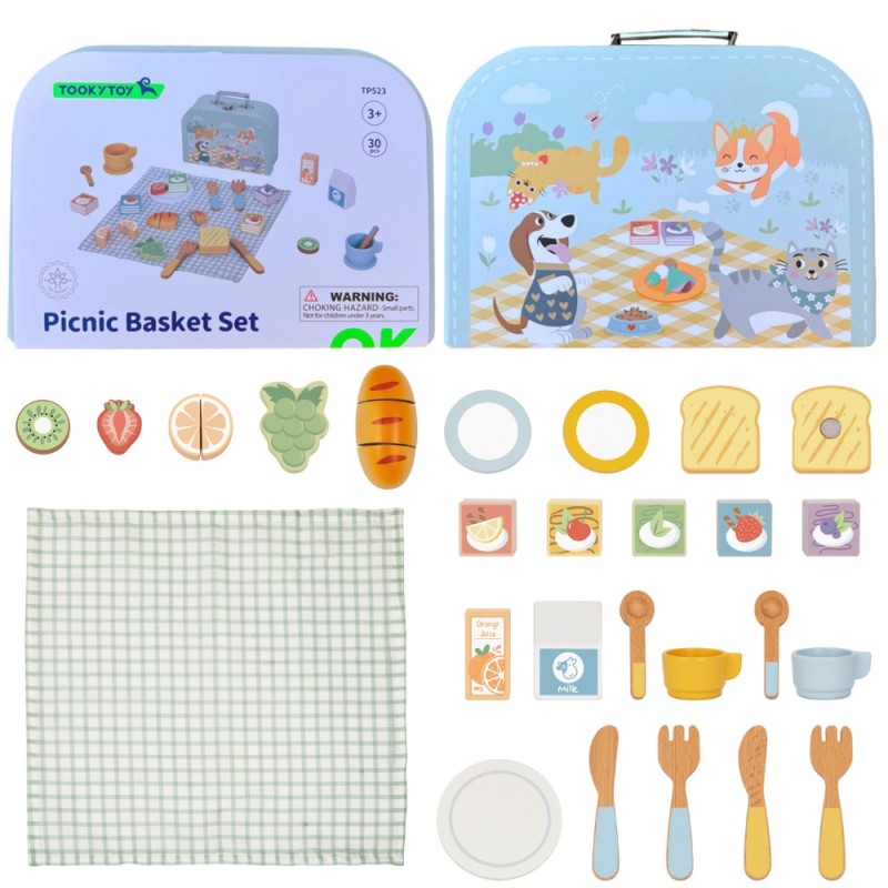 Drewniany zestaw piknikowy to komplet akcesoriów do zabawy w przygotowywanie i serwowanie posiłków. Ten piękny, drewniany zestaw to nie tylko urocza zabawka – to zaproszenie do twórczej, rozwijającej zabawy w domu i na świeżym powietrzu. Idealny na prezent! Wszystkie elementy zostały zapakowane w praktyczną walizkę, dzięki czemu zabawkę można łatwo przechowywać i zabrać ze sobą w podróż. Sprawdzi się podczas samodzielnej zabawy, jak i wspólnych aktywności z rodzeństwem lub przyjaciółmi.