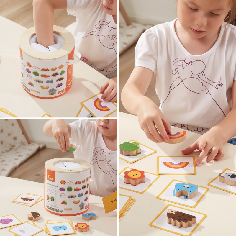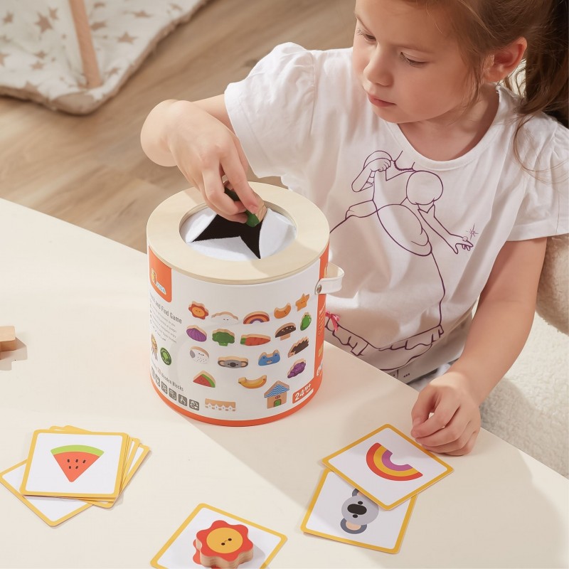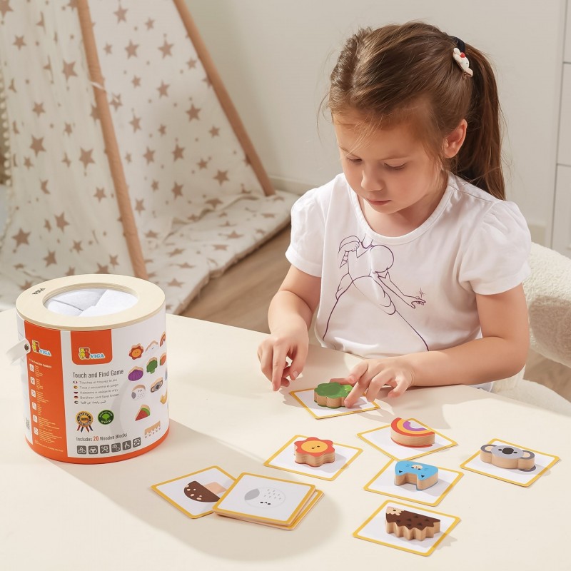 Drewniane klocki „Gra w ciemno” od renomowanej marki Viga to fantastyczna propozycja dla dzieci od 3 lat. Dzięki 20 kolorowym elementom i kartom do zabawy każdy maluch może bawić się w zgadywanie, dopasowywanie i sortowanie dotykiem, co pobudza ciekawość i kreatywność. Ta wyjątkowa gra „dotknij i poczuj” ćwiczy nie tylko zmysł dotyku, ale też pamięć i spostrzegawczość, zapewniając godziny frajdy. Idealna zarówno do zabawy samodzielnej, jak i w grupie – w domu czy przedszkolu. Solidne, drewniane wykonanie gwarantuje trwałość i bezpieczeństwo użytkowania.