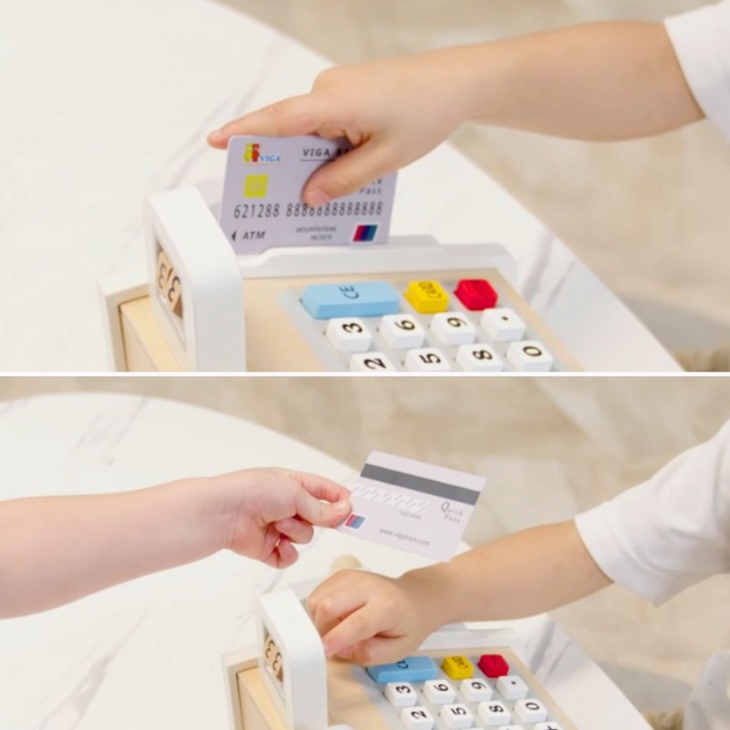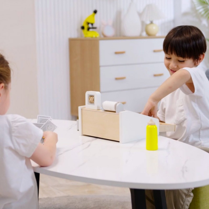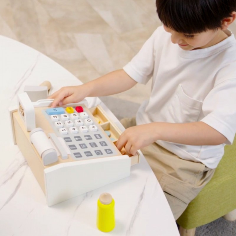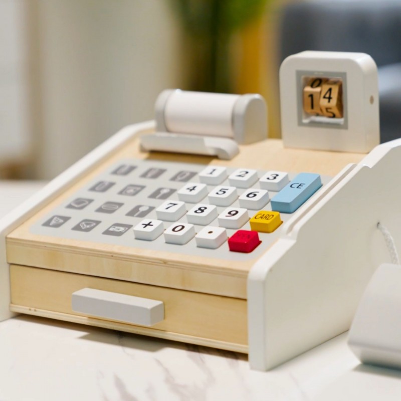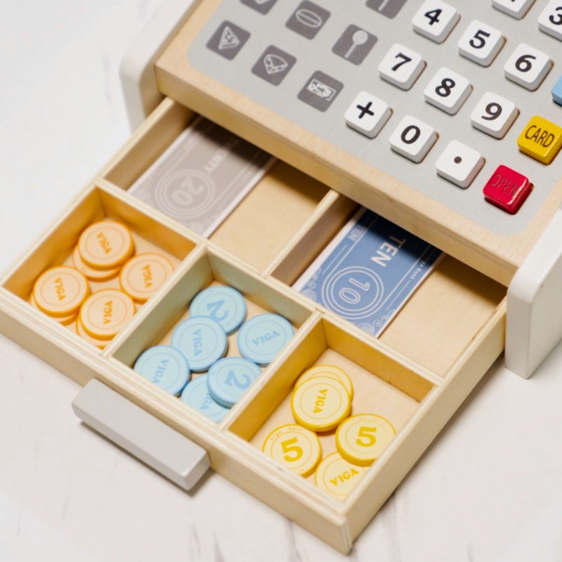 VIGA Drewniana Kasa sklepowa szaro biała