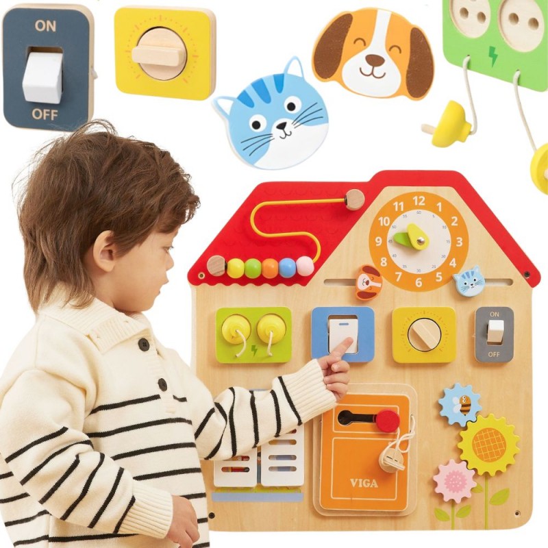 Ta urocza, kolorowa tablica manipulacyjna "Domek" od marki Viga! to fantastyczna zabawka, która w mgnieniu oka rozbudzi ciekawość Twojego dziecka i zachęci je do aktywnej, wciągającej zabawy! Przemyślany design w kształcie domku kryje aż 8 interaktywnych elementów, które zapewniają długie godziny kreatywnego zajęcia. Otwierane drzwi, przesuwane suwaki, ruchome zębatki i labirynt z koralikami – to tylko część atrakcji, które wspierają rozwój motoryczny i koordynację. Tablicę można łatwo zamontować na ścianie lub położyć na stole, co czyni ją niezwykle praktyczną i uniwersalną. To idealny prezent dla maluchów od 18. miesiąca życia, gwarantujący naukę przez zabawę!