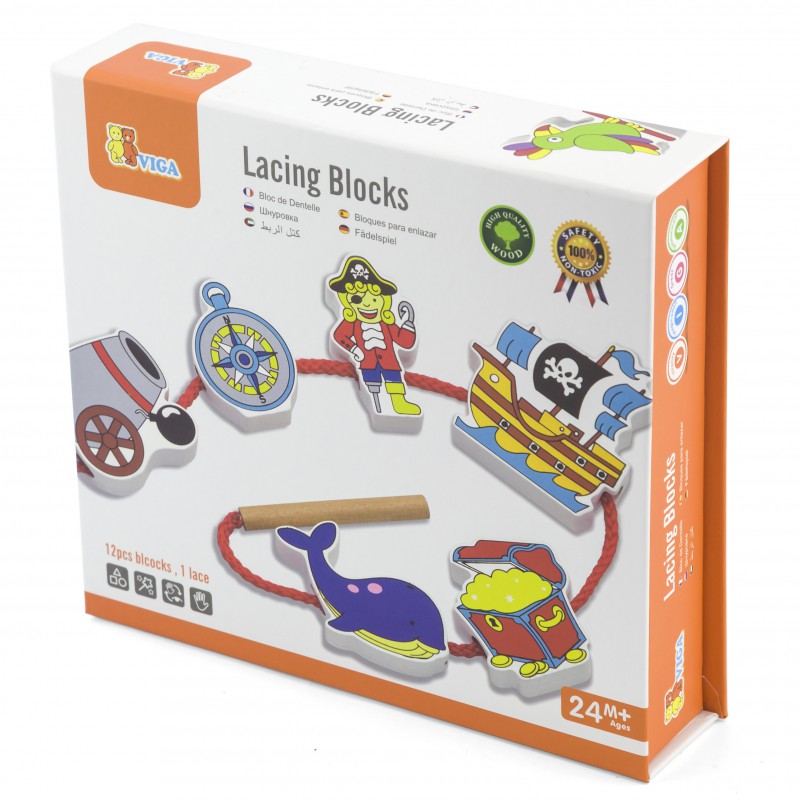VIGA Drewniane Klocki Przeplatanka Nawlekanie Piraci