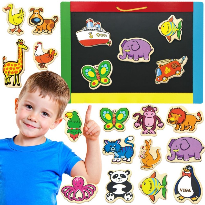 VIGA Drewniane Magnesy Zwierzęta to wyjątkowy zestaw 20 kolorowych elementów, który przeniesie dziecko w fascynujący świat fauny. Każdy magnes przedstawia inne zwierzątko, co czyni zabawę różnorodną i angażującą. Zestaw został wykonany z wysokiej jakości drewna, co gwarantuje trwałość i bezpieczeństwo podczas codziennych aktywności na magnetycznych tablicach czy domowej lodówce. Te magnetyczne zwierzątka to nie tylko zabawka, ale także doskonała pomoc dydaktyczna. Dzięki nim maluchy mogą poznawać nazwy zwierząt, ich naturalne środowiska oraz uczyć się klasyfikacji. Żywe barwy i estetyczne wykonanie przyciągają wzrok, zachęcając do kreatywnego tworzenia własnych historyjek i scenek z udziałem mieszkańców farmy, safari czy morskich głębin.