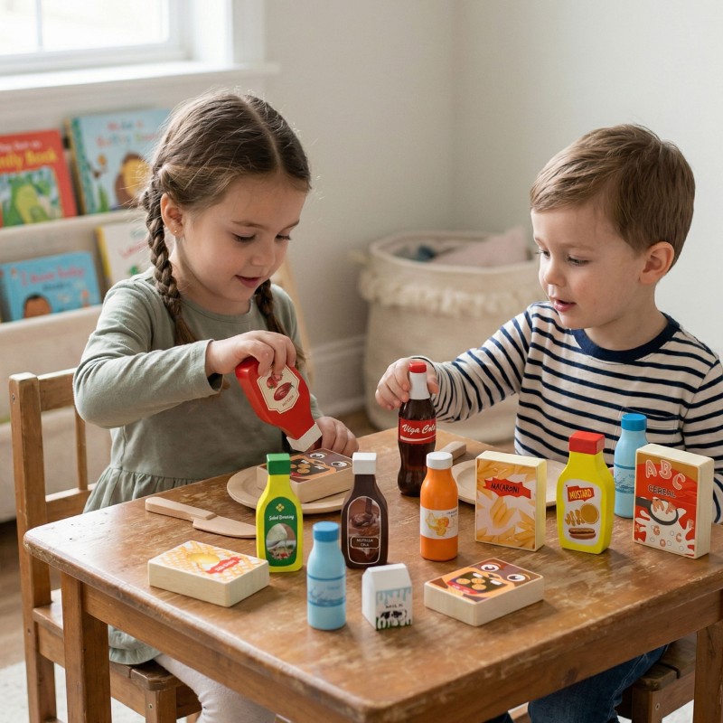 Zestaw 12 artykułów spożywczych od renomowanej marki Viga będzie świetnym dodatkiem do codziennej zabawy twojego dziecka. Urozmaici każdą zabawę w dom czy też w sklep oraz pozwoli wcielić się w rolę prawdziwej pani domu. Zakupy już nie będą problemem, a wręcz staną się frajdą dla Waszych pociech. Maluch będzie mógł naśladować swój największy wzór jakim jest mama. Zestaw wykonany z myślą o małych rączkach dziecka, brak ostrych krawędzi sprawia, że jest w pełni bezpieczny dla dziecka. Zabawka jest wykonana z wysokiej jakości drewna, co gwarantuje jej trwałość. Materiały i farby użyte do produkcji zabawki są ekologiczne i całkowicie bezpieczne.