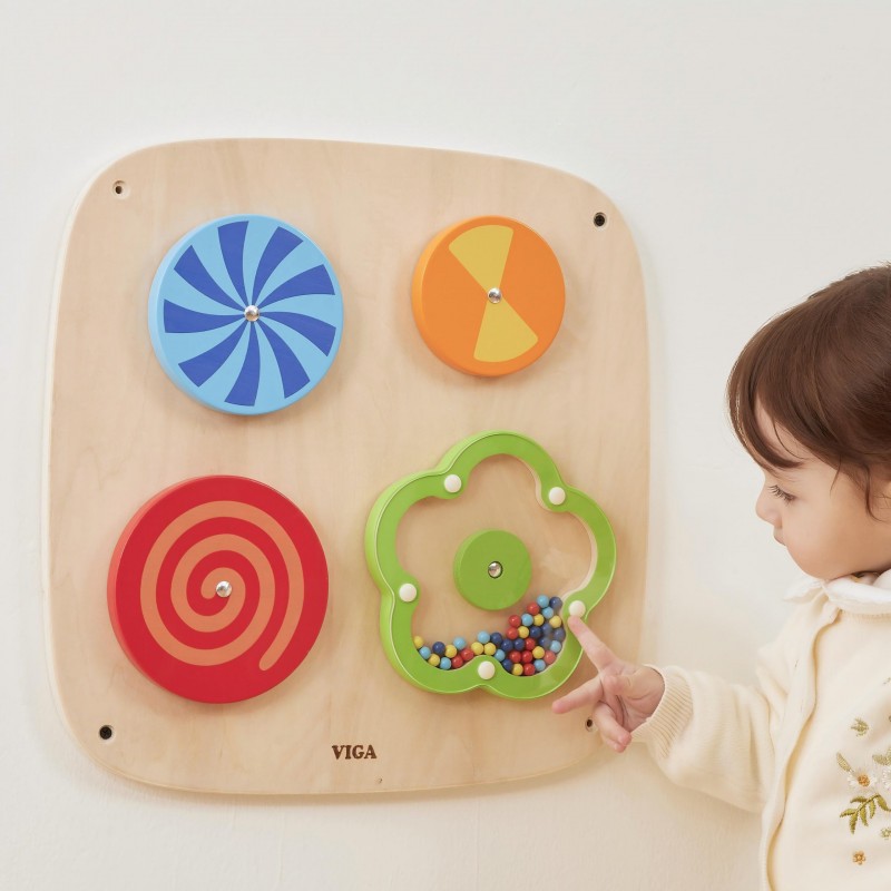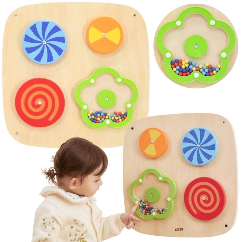 Przenieś swoje dziecko w fascynujący świat optycznych iluzji dzięki temu wyjątkowemu panelowi ściennemu marki VIGA! Cztery obrotowe dyski hipnotyzują, zmieniającymi się wzorami, a kwiatek wypełniony drewnianymi koralikami nagradza każdy ruch rączki przyjemnym, szumiącym dźwiękiem. To idealne połączenie beztroskiej zabawy z intensywnym treningiem koordynacji i percepcji wzrokowej malucha. Dzięki sprytnemu montażowi na ścianie zyskujesz porządek w pokoju, tworząc jednocześnie profesjonalny kącik sensoryczny, do którego dziecko zawsze ma dostęp. Solidne, bezpieczne i ekologiczne wykonanie gwarantuje, że ta edukacyjna przygoda będzie trwać przez długie lata.