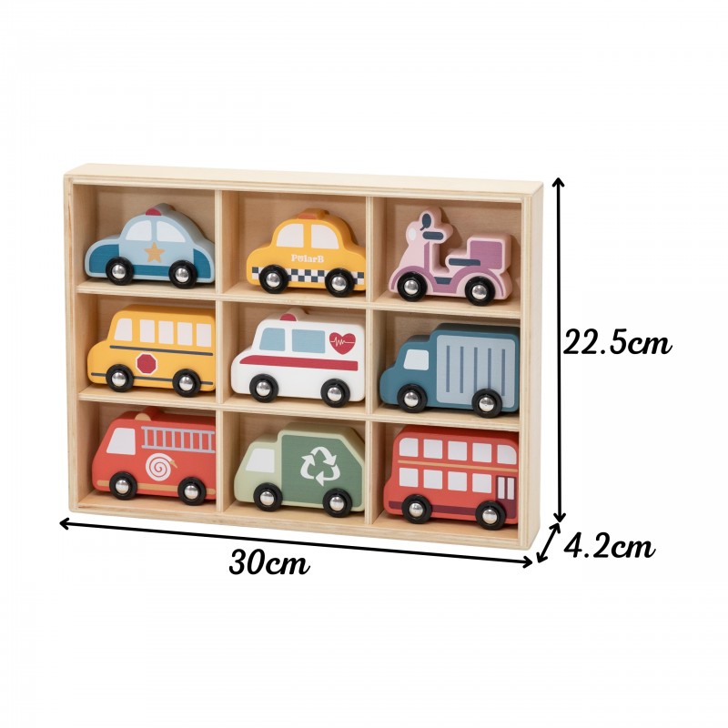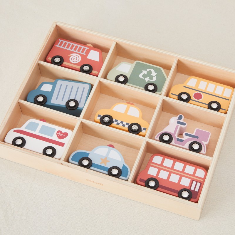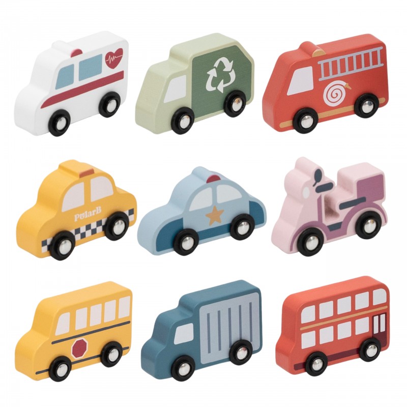 Odkryj gwarne miasto z Drewnianym Zestawem Pojazdów Miejskich od marki Viga! Ten solidnie wykonany komplet to aż 9 uroczych samochodzików, które odzwierciedlają pojazdy służbowe i codziennego użytku, idealnie dopasowane do małych rączek dzieci od 24 miesiąca życia. Znajdziesz tu m.in. wóz strażacki, ambulans, taksówkę i autobus piętrowy. Zabawka wspiera rozwój kreatywności i wyobraźni, pozwalając maluchom tworzyć ekscytujące sceny z życia miasta. Dzięki dołączonej drewnianej skrzynce z przegródkami, autka są łatwe do uporządkowania i zabrania ze sobą w każdą podróż.