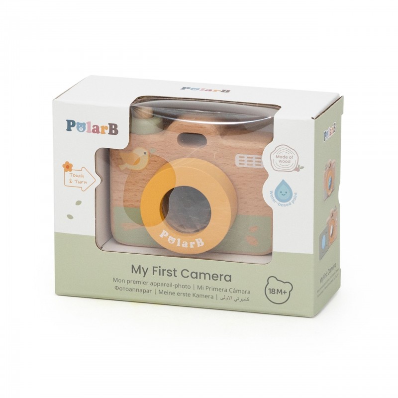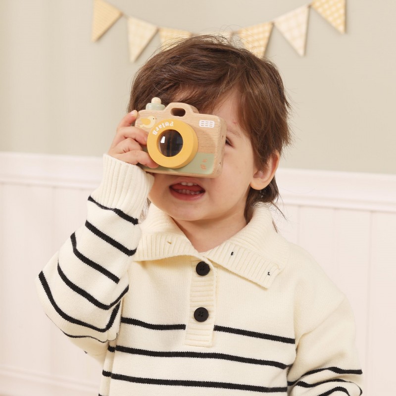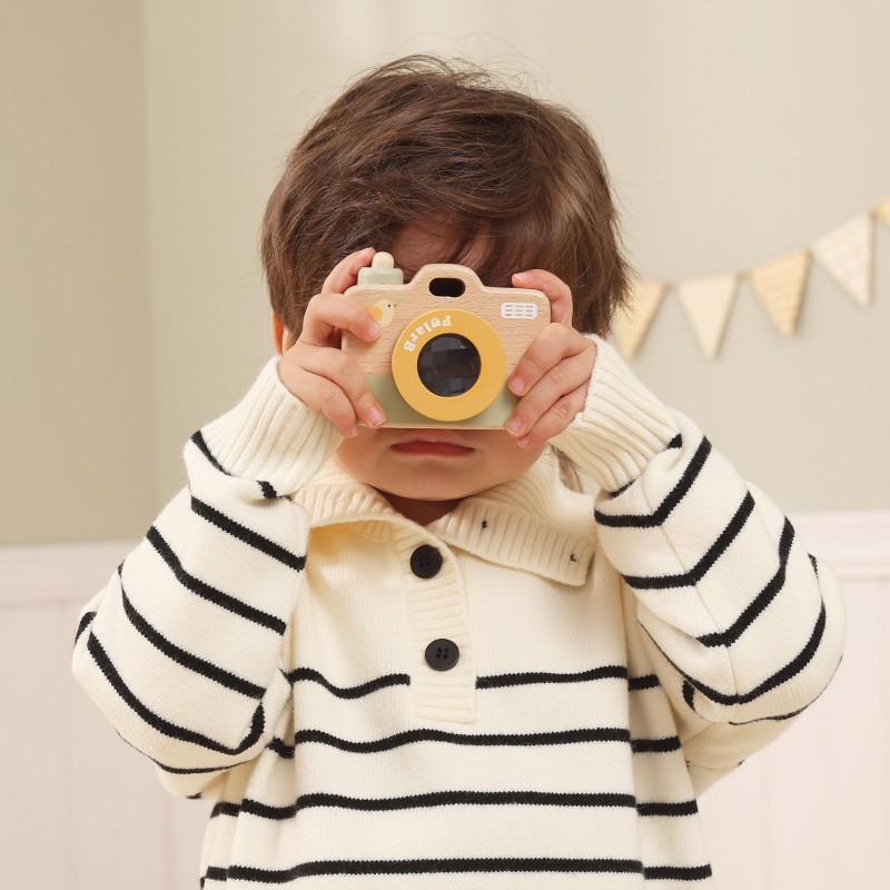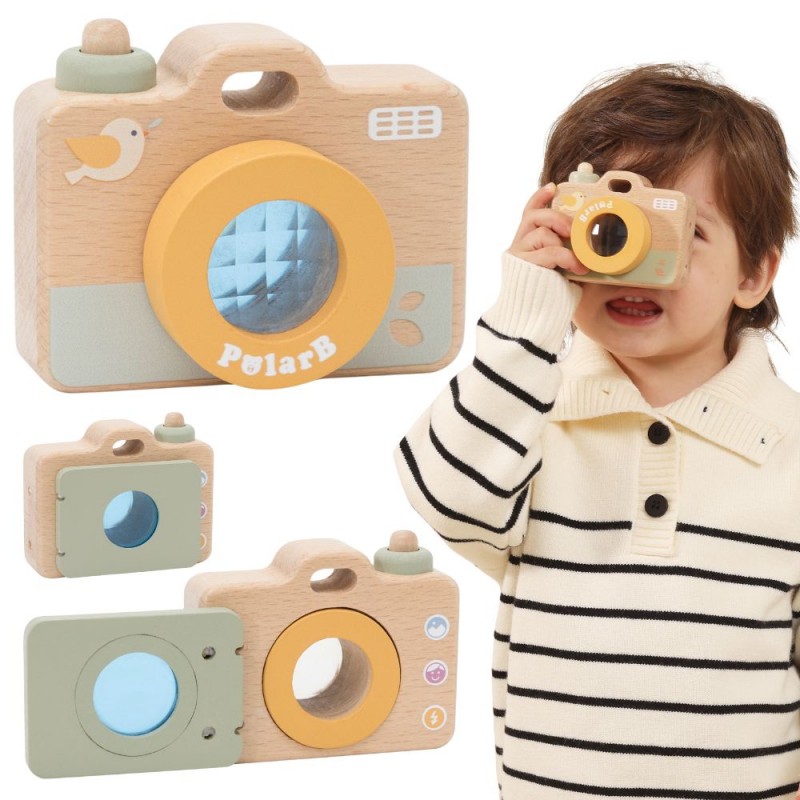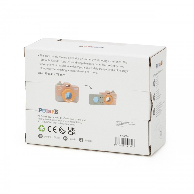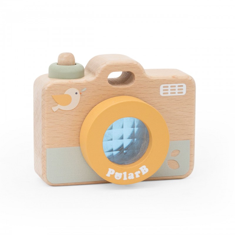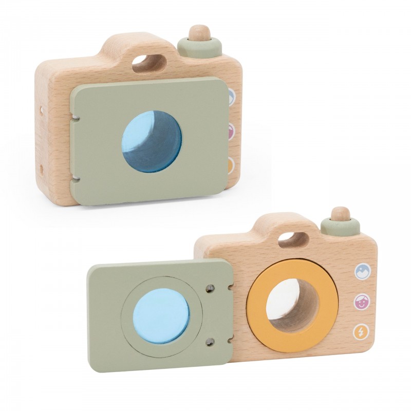 Drewniany aparat „Mój Pierwszy Aparat” od marki Viga to wyjątkowa zabawka edukacyjna dla dzieci od 18 miesięcy. Dzięki obrotowemu obiektywowi kalejdoskopu dziecko odkrywa kolory i kształty, rozwijając wyobraźnię oraz zmysły. Naturalne drewno bukowe, pastelowe barwy i bezpieczne, zaokrąglone krawędzie gwarantują komfort oraz bezpieczeństwo zabawy. Odchylany tylny panel zapewnia dodatkową interakcję i urozmaica zabawę. Idealny pomysł na pierwszy aparat dla dziecka oraz prezent bez ekranu.