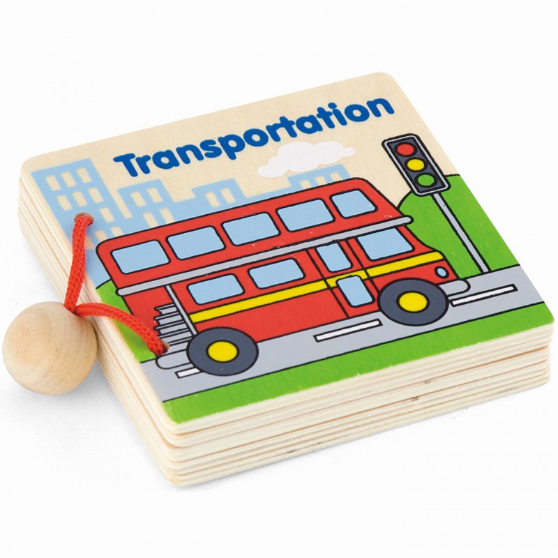 Moja pierwsza książeczka drewniana od marki VIGA to wyjątkowa zabawka edukacyjna, która wprowadza najmłodszych w świat literatury w niezwykle trwały i bezpieczny sposób. Każda karta książeczki została wykonana z naturalnego drewna i połączona ozdobnym, czerwonym sznureczkiem, co ułatwia małym rączkom wygodne przewracanie stron. Na poszczególnych elementach znajdują się kolorowe, przyciągające wzrok ilustracje opatrzone podpisami w języku angielskim, dzięki czemu dziecko od najmłodszych lat oswaja się z językiem obcym. Zabawka występuje w trzech wersjach tematycznych: Zoo, Farma oraz Transport, co pozwala na poznawanie zwierząt, kolorów oraz różnych pojazdów.