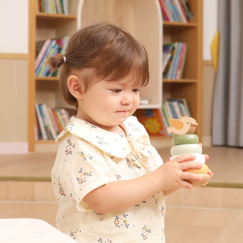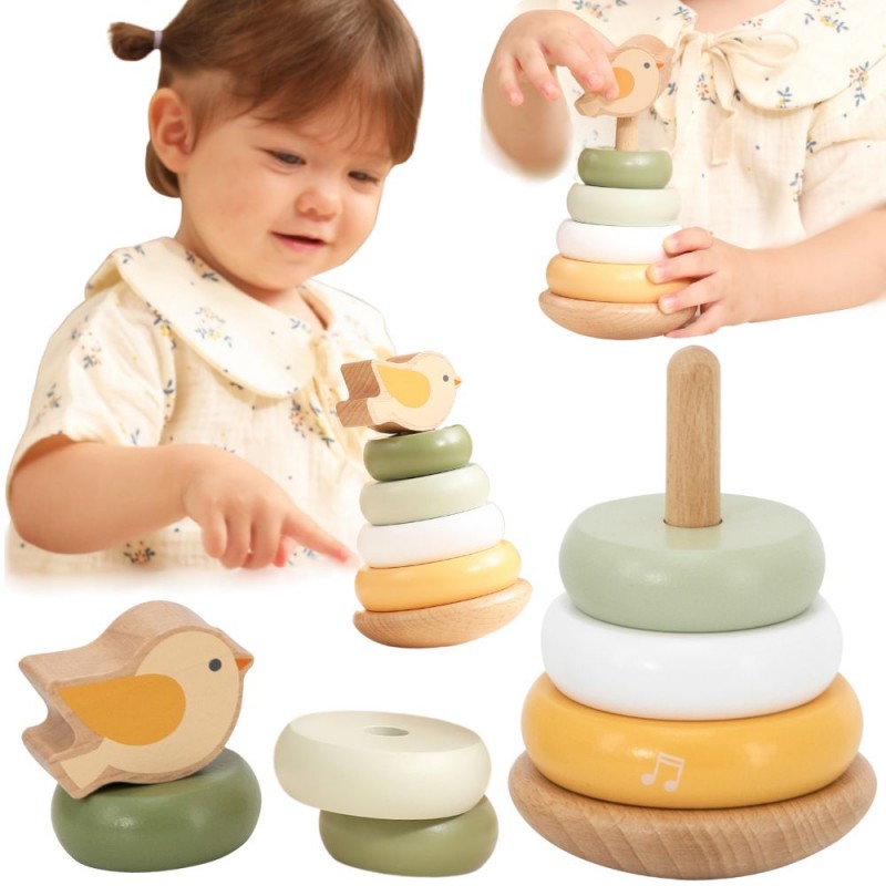 Poznaj Drewnianą Piramidke Edukacyjną , zabawkę, która łączy naukę z zabawą dla dzieci od 12. miesiąca życia! Maluchy mogą popchnąć ptaszka, aby zaczął się chwiać i obserwować jego ruchy. Drewniane pierścienie o gładkich krawędziach łatwo układa się w różnej kolejności, co rozwija zdolności manualne i logiczne myślenie. Kolorowe kółka pomagają w nauce rozróżniania kolorów i rozmiarów. Solidna konstrukcja i odpowiedni rozmiar elementów sprawiają, że zabawa jest bezpieczna i komfortowa dla małych rączek.