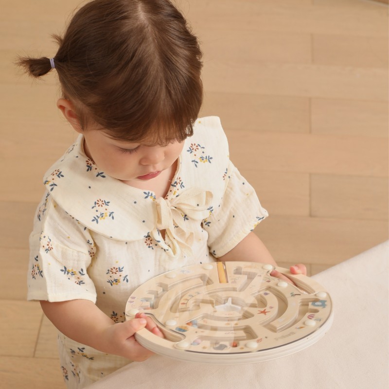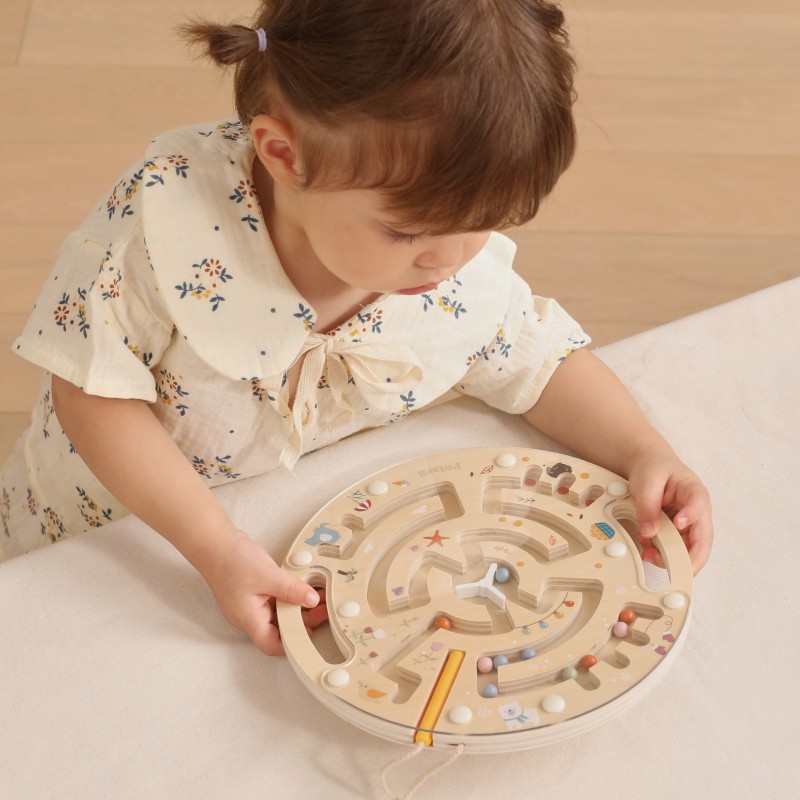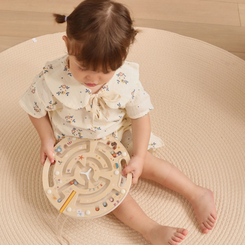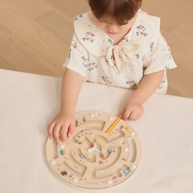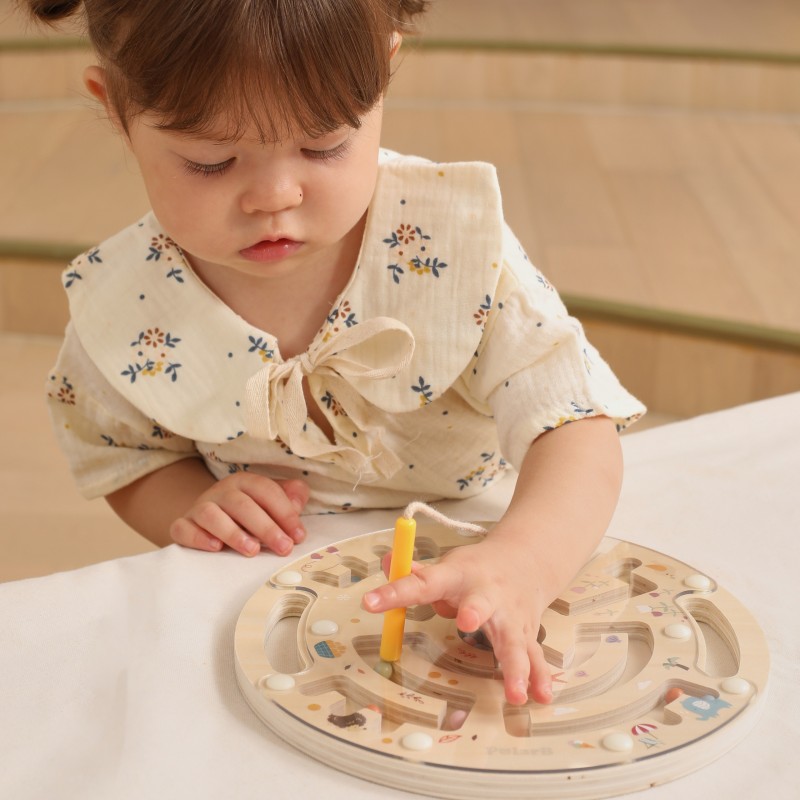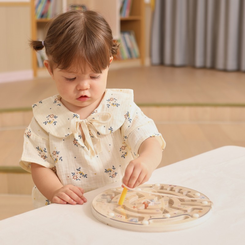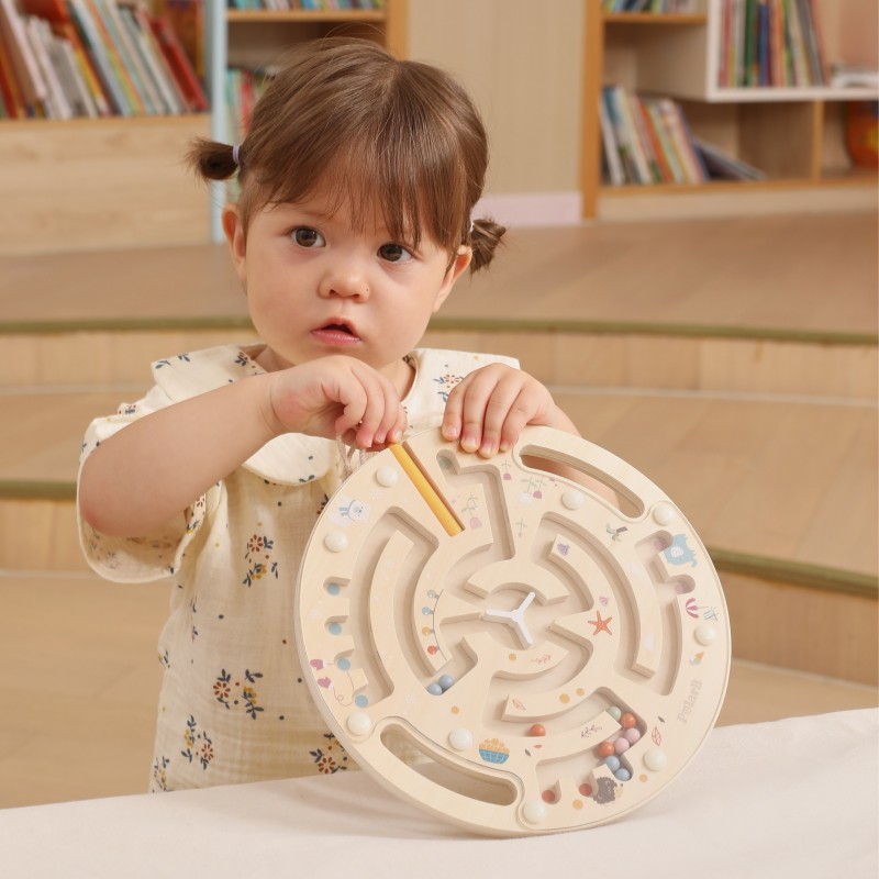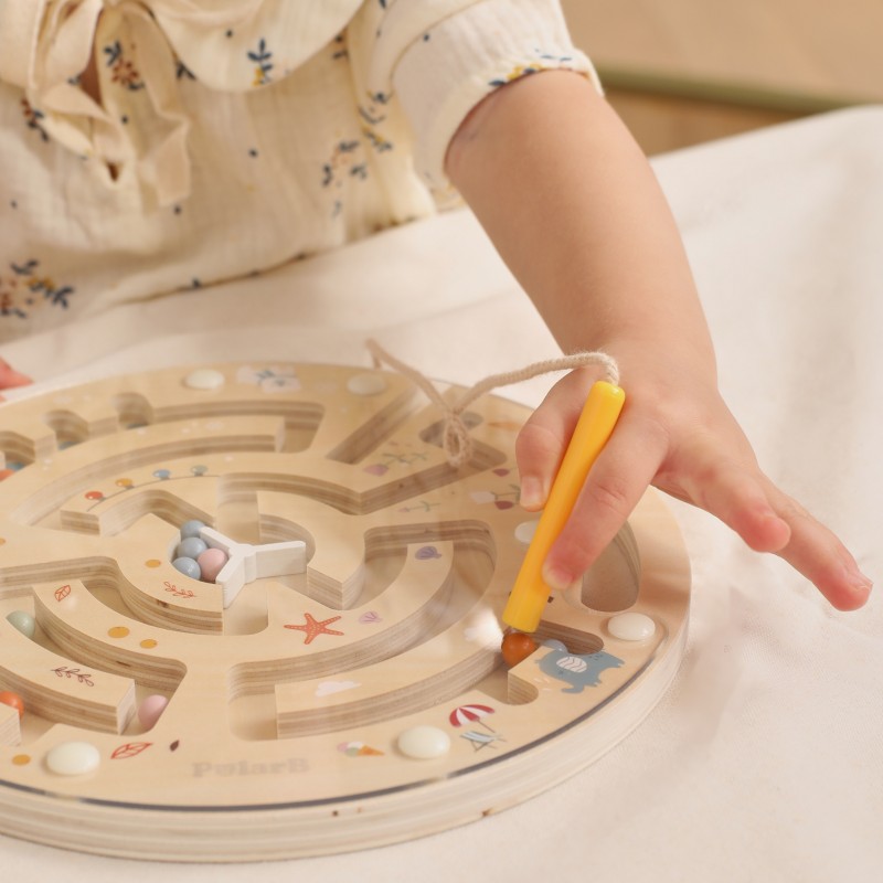 Labirynt magnetyczny od marki VIGA Wykonany z solidnego drewna i ozdobiony uroczymi ilustracjami przedstawiającymi 4 pory roku, zapewnia nie tylko świetną zabawę, ale również wspiera rozwój zdolności manualnych i logicznego myślenia. Dzięki magnetycznemu rysikowi dziecko może przesuwać kolorowe kulki przez labirynt, ćwicząc koordynację ręka-oko.