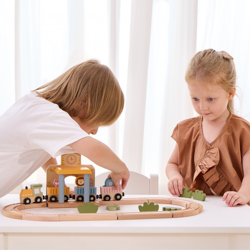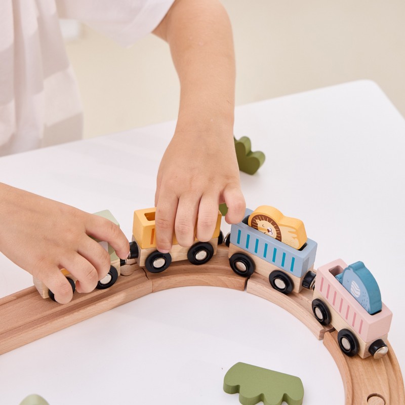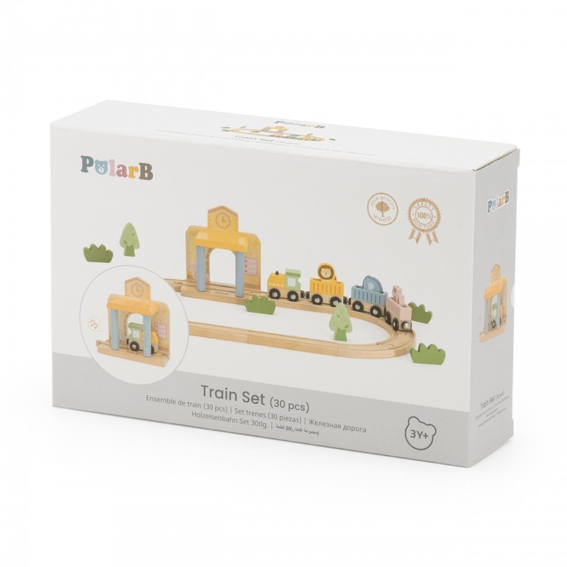 PolarB Drewniany Zestaw Kolejowy 30 el. to doskonała propozycja dla małych miłośników pociągów! Zawiera 30 elementów, w tym różnorodne tory, interaktywną stację oraz akcesoria, które pozwalają na tworzenie własnych scenariuszy zabawy. Dodatkowo dołączona książeczka z przewodnikiem ułatwia budowanie realistycznej scenerii stacji kolejowej. Drewniane elementy są solidne i trwałe, a ich uniwersalność zachęca dzieci do swobodnej i kreatywnej zabawy.