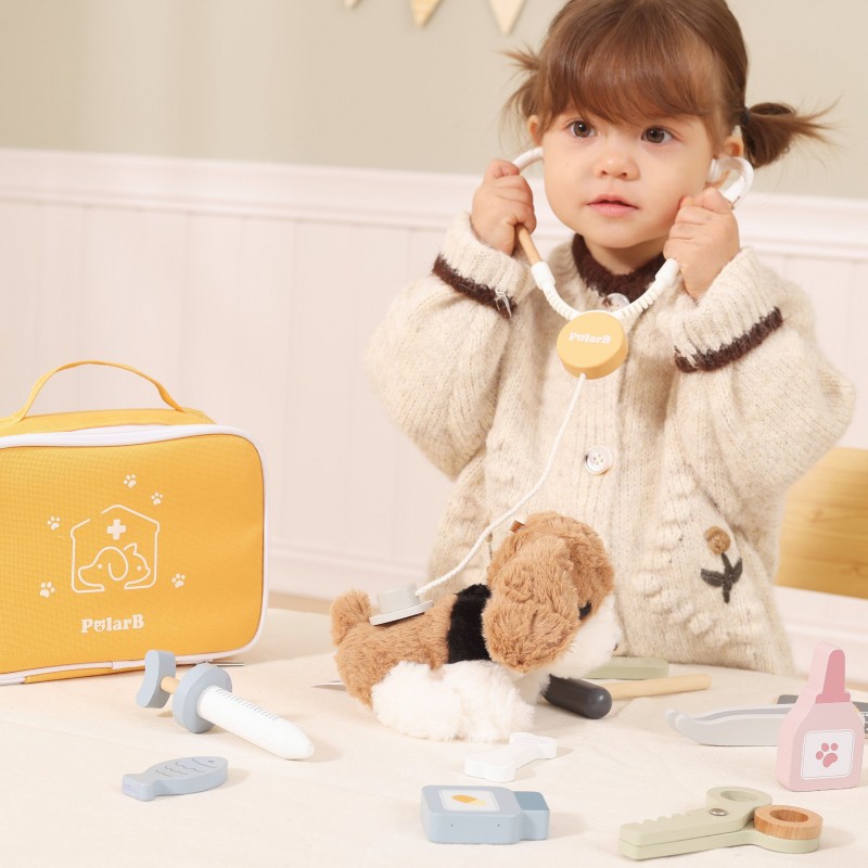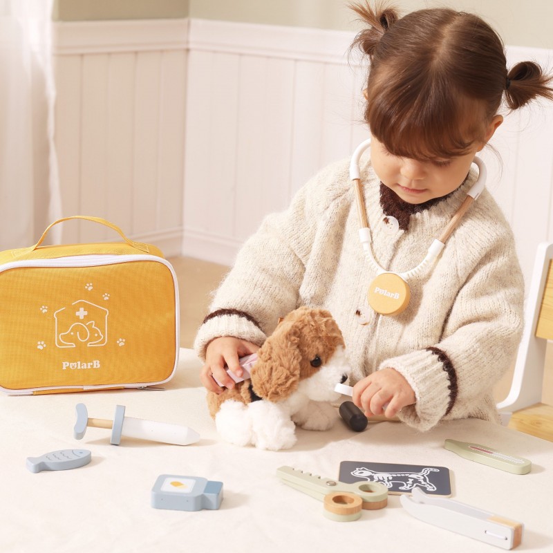 Zestaw do pielęgnacji zwierząt VIGA PolarB przenosi dziecko w świat prawdziwej kliniki weterynaryjnej, gdzie może troszczyć się o swoich pluszowych pacjentów. Dzięki 12 realistycznym akcesoriom każdy mały miłośnik czworonogów poczuje się jak profesjonalny lekarz weterynarii. To doskonała zabawa w odgrywanie ról, która uczy empatii, odpowiedzialności i troski o innych.Całość została zapakowana w elegancką, żółtą torbę z wygodną rączką oraz zamkiem błyskawicznym. Ułatwia ona przechowywanie wszystkich elementów i pozwala zabrać zestaw w podróż, do przedszkola czy do dziadków. Porządek i mobilność w jednym!