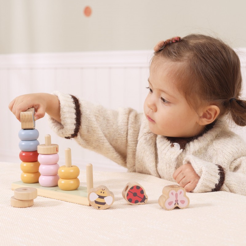 Drewniana układanka Wiosenna Nauka Liczenia od marki Viga, to radosna zabawa, która w naturalny sposób wprowadza dziecko w świat liczenia i logicznego myślenia. Kolorowe elementy z motywami sympatycznych owadów zachęcają malucha do układania, sortowania i eksperymentowania. Zabawa polega na nakładaniu elementów na trzpienie, dopasowywaniu kolorów, rozmiarów oraz liczb. Dzięki temu dziecko uczy się poprzez działanie, w swoim tempie. To idealne połączenie nauki, rozwoju i świetnej zabawy w domu, przedszkolu czy żłobku.