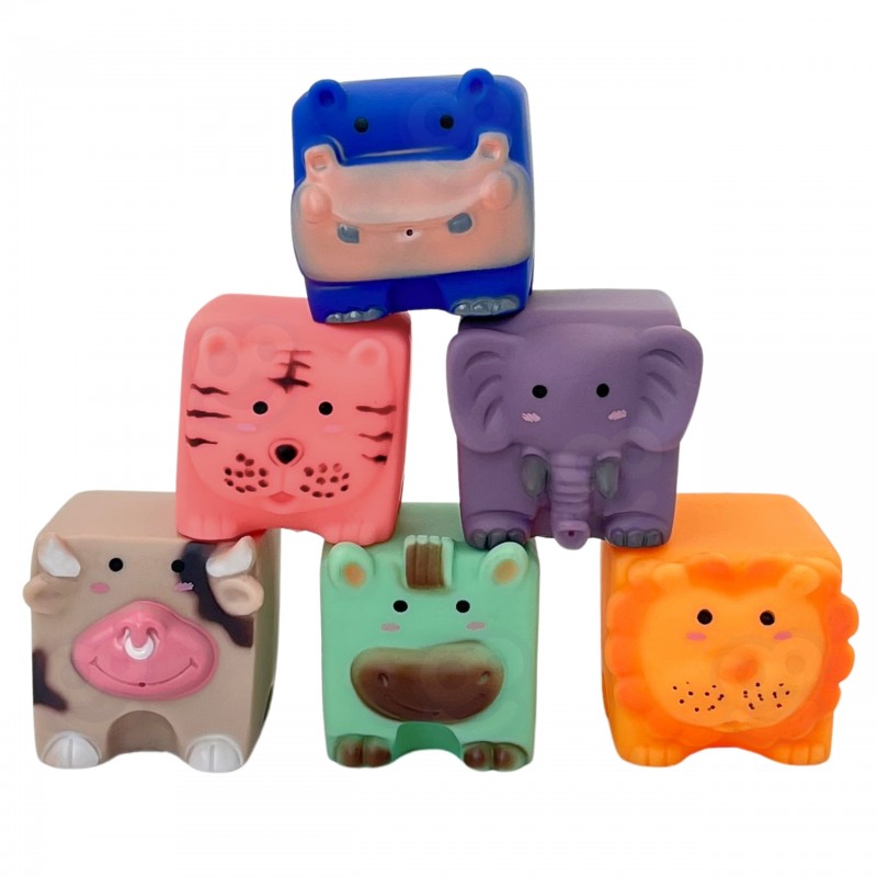 Zestaw tych klocków stał się ulubionym mojego synka. Każdy wykonany z mięciutkiej gumy przyjemnej w dotyku podczas zabawy. Po ich ściśnięciu wydają dźwięki. Syn codziennie zabiera je do kąpieli. Super!