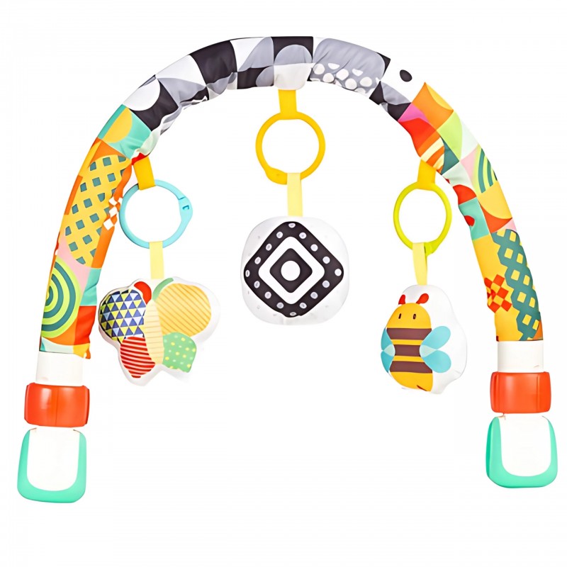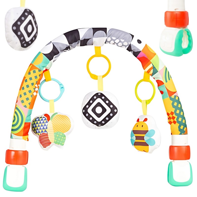 Pałąk edukacyjny to idealna zabawka dla najmłodszych, która wspiera rozwój dziecka już od pierwszych dni życia. Dzięki kolorowym wzorom i miękkim zawieszkom maluszek poznaje kształty, kolory i faktury, rozwijając przy tym zmysły. Zabawka może być łatwo przymocowana do wózka, łóżeczka lub fotelika, zapewniając dziecku atrakcję w domu i w podróży. Różnorodne elementy zachęcają do chwytania, obserwowania i dotykania, co wspiera rozwój motoryki małej. To bezpieczna i funkcjonalna propozycja, która łączy zabawę z nauką.