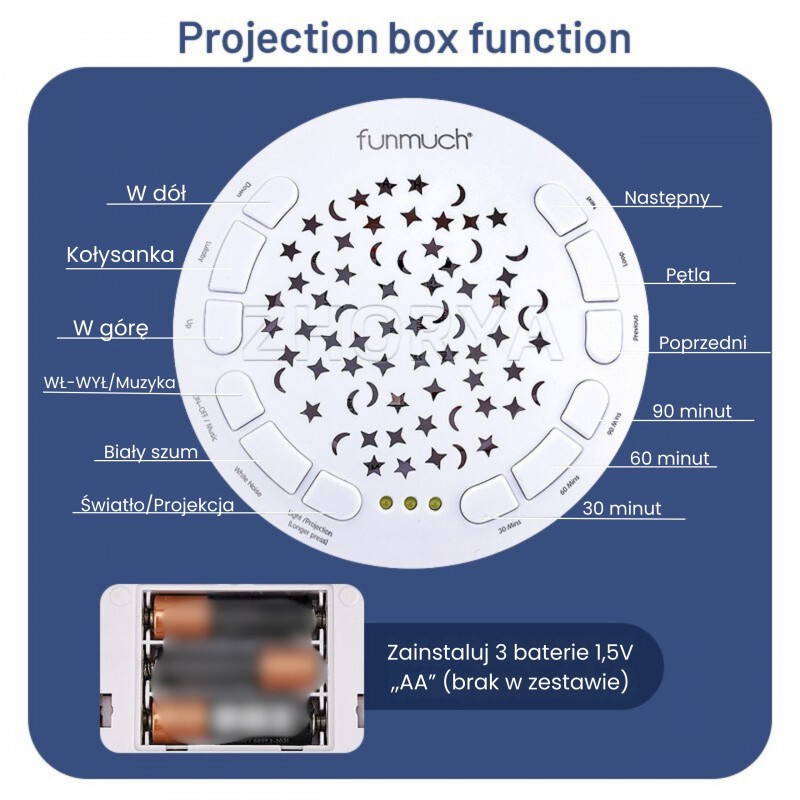 Mięciutki Słonik z Projektorem od Woopie to idealny przyjaciel dla każdego noworodka i niemowlęcia. Ta urocza przytulanka łączy w sobie funkcje projektora gwiazd i księżyców oraz pozytywki z uspokajającymi melodiami. Słonik pomoże ukoić maluszka do snu i stworzyć w pokoju magiczny, relaksujący nastrój. Moduł dźwiękowo-świetlny wbudowany w brzuch słonika oferuje aż 12 melodii, w tym delikatne kołysanki i uspokajający biały szum. Posiada także funkcję timera, umożliwiającą automatyczne wyłączenie po 30, 60 lub 90 minutach. Przytulanka wykonana jest z miękkiego, bezpiecznego pluszu, idealnego do tulenia i bezpiecznego od urodzenia.