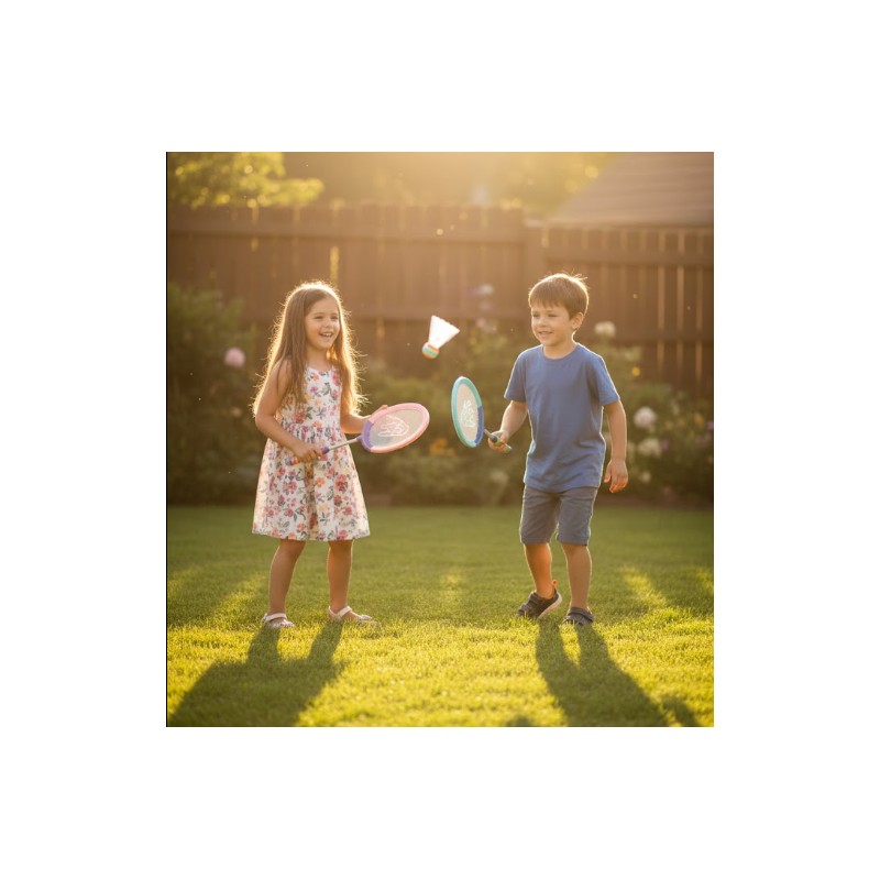 Zestaw Rakietek od marki Woopie z pewnością zachęci dzieci i dorosłych do spędzania czasu aktywnie na świeżym powietrzu. Gra w badmintona rozwija zdolności motoryczne dziecka tzw. "dużą motorykę". Rakietki posiadają wygodny uchwyt idealny dla rączek dzieci oraz dzięki elastycznej siatce pozwalają na dalsze uderzenia.