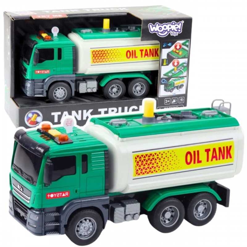 Marzenie każdego małego fana motoryzacji może się spełnić dzięki wyjątkowej zielonej cysternie na wodę od marki Woopie! Ta wspaniała zabawka to coś więcej niż tylko zwykły samochód – to w pełni interaktywny pojazd techniczny, który zachwyci każdego malucha swoim wyglądem, funkcjami i realistycznymi detalami. Zaprojektowana z dbałością o każdy szczegół zielona cysterna została wyposażona w liczne funkcje, które przenoszą zabawę na zupełnie nowy poziom. Zabawa tą ciężarówką nie ogranicza się jedynie do pchania jej po podłodze. Dzięki wbudowanemu zbiornikowi na wodę, funkcjonalnej pompce oraz elastycznemu wężowi dziecko może faktycznie symulować tankowanie. Na górze pojazdu znajduje się żółty przycisk, który służy do pompowania wody – wystarczy kilka naciśnięć, by z końcówki węża zaczęła lecieć woda, co dostarcza niezwykłych wrażeń i pobudza wyobraźnię. Na dachu kabiny umieszczono przyciski uruchamiające realistyczne dźwięki i migające światła, które doskonale odwzorowują prawdziwe sygnały pojazdów specjalistycznych. Dzięki temu dziecko nie tylko bawi się, ale i uczy zasad działania maszyn oraz odgrywa różne scenariusze – od tankowania, po transport cennych cieczy. Solidna konstrukcja, bezpieczne materiały i szczegółowe wykonanie sprawiają, że zabawka jest idealna nawet dla młodszych dzieci. Żywa kolorystyka, dynamiczna forma i ruchome elementy sprawiają, że to nie tylko zabawka, ale i prawdziwe narzędzie edukacyjne, które zachęca do aktywności, poznawania świata i odgrywania ról. Ta ciężarówka to doskonały pomysł na prezent – gwarantuje mnóstwo radości, rozwija ważne umiejętności i na długo przyciąga uwagę dziecka!