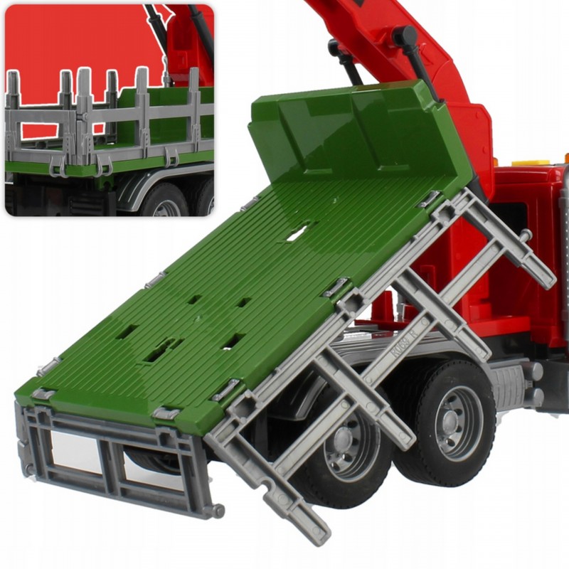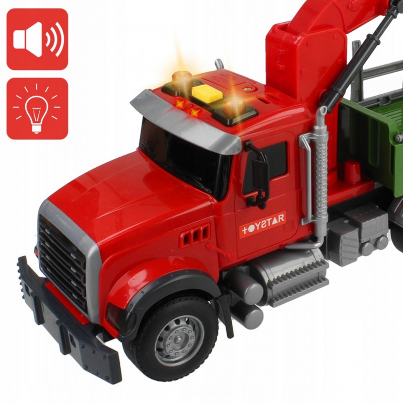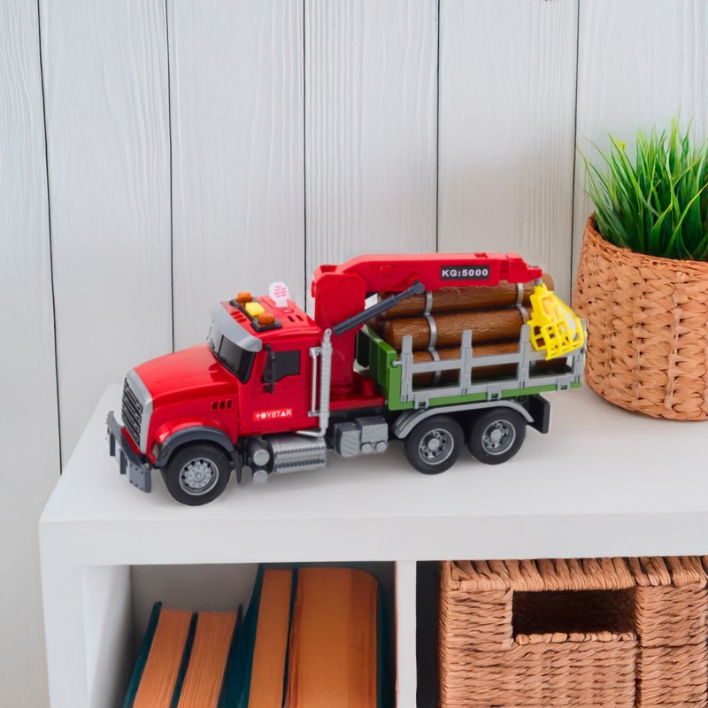 Ciężarówka z dźwigiem do drewna od marki Woopie to rozbudowana, interaktywna zabawka, która przenosi dzieci w fascynujący świat transportu i pracy ciężkiego sprzętu. To znacznie więcej niż zwykły samochód – to mobilne centrum operacyjne, które daje możliwość zabawy w załadunek i rozładunek drewna, symulację transportu, obsługę dźwigu i wiele więcej. Zabawkowy pojazd wzorowany jest na prawdziwych ciężarówkach wykorzystywanych w przemyśle drzewnym. Posiada ruchomy dźwig obrotowy z mechanicznym chwytakiem, który umożliwia realistyczne chwytanie i przenoszenie dołączonych bali drewna. Dzięki temu dziecko może wcielać się w operatora dźwigu, kierowcę transportera lub pracownika leśnictwa. To zabawka, która oferuje szeroką gamę scenariuszy i kreatywnych możliwości. Wrażenia z zabawy potęgują efekty świetlne i realistyczne dźwięki silnika, klaksonu i pracy maszyny, które aktywowane są przyciskami umieszczonymi na kabinie. Estetyczne wykonanie, żywa kolorystyka i dbałość o detale sprawiają, że zabawka wygląda efektownie i profesjonalnie. Obrotowy dźwig można precyzyjnie sterować ręcznie – podnosić i opuszczać chwytak, przekręcać go w lewo i prawo oraz chwytać ładunek. To idealna zabawka dla dzieci, które interesują się pojazdami, budową, lasem, transportem i maszynami roboczymi.