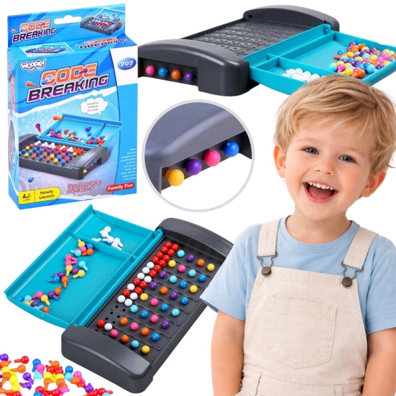 Gra logiczna Łamacz Kodów– wersja podróżna od Woopie to kompaktowa i przenośna wersja kultowej łamigłówki, która idealnie sprawdzi się w domu i w podróży. Zadaniem graczy jest rozgryźć tajny kod przeciwnika za pomocą dedukcji, intuicji i sprytu. Dzięki niewielkim wymiarom zmieści się w plecaku, torbie czy walizce, a zamykane pudełko chroni elementy przed zgubieniem. Gra dedykowana jest dzieciom od 3 roku życia, ale sprawdzi się też jako lekka rozrywka dla starszych graczy.