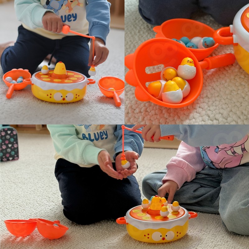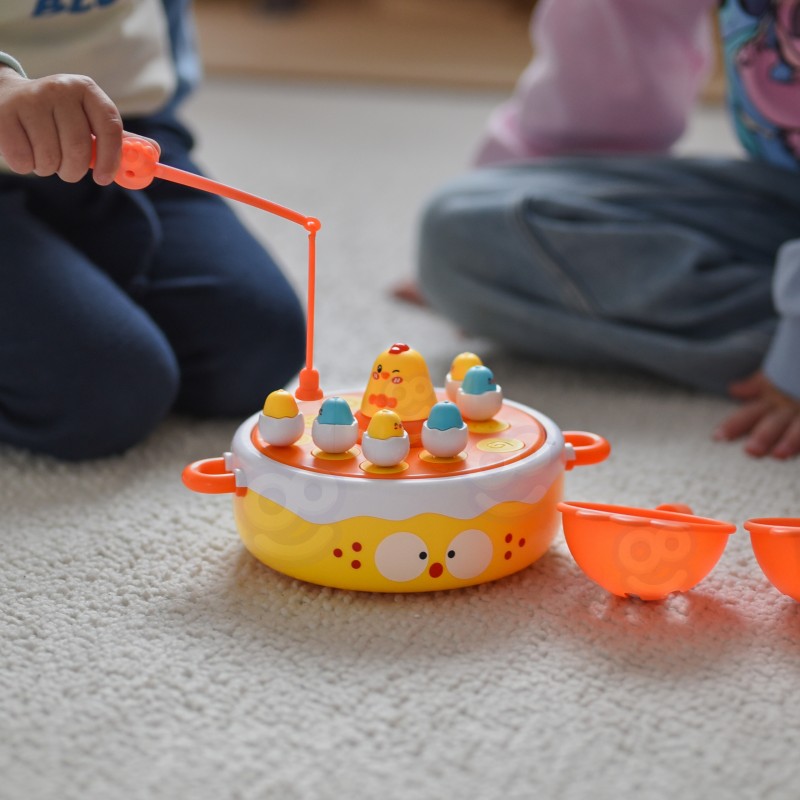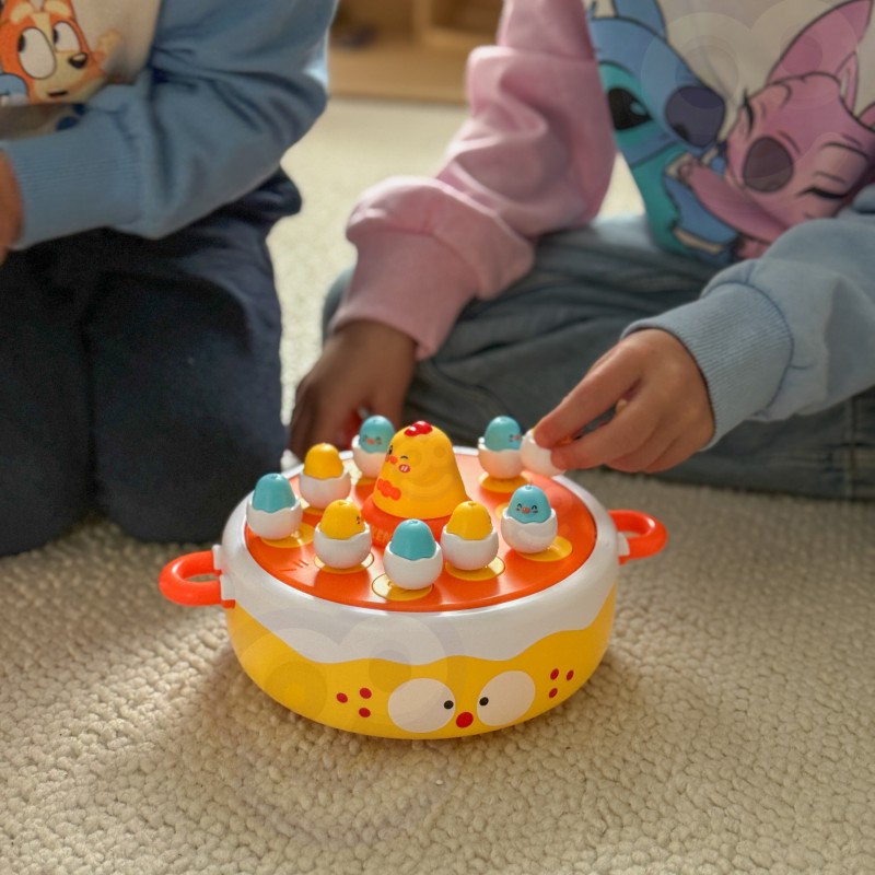 Przygotuj się na świat pełen radości i nauki z grą "Wesołe Kurczaczki" od Woopie! Ta wciągająca zabawka 4w1 pozwala dzieciom łowić pisklęta wędką, łapać je łopatką po wystrzeleniu z katapulty, obserwować wirujące kurczaczki na muzycznym dysku, a nawet używać większego kurczaka jako samochodziku. Co więcej, na odwrocie podstawy znajduje się plansza do gry w kółko i krzyżyk, dzięki czemu "Wesołe Kurczaczki" to wszechstronna zabawka idealna do wspólnej zabawy, wspierająca rozwój zręczności, koncentracji i kreatywności.
