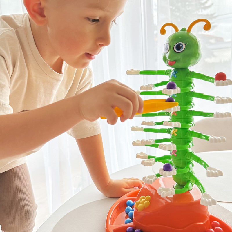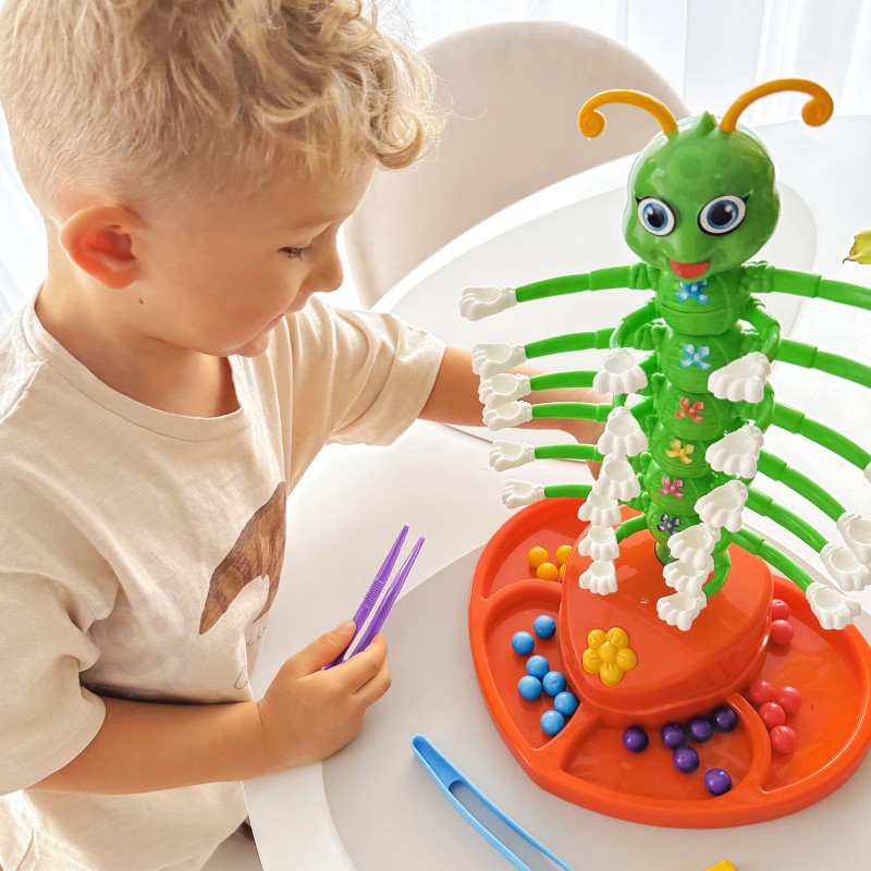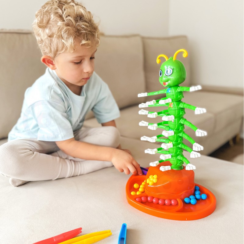 Każdy z graczy wybiera swój kolor pęsety i kuleczek. Gra zaczyna się w momencie włączenia gąsienicy (naciśnięcie żółtego kwiatuszka na podstawie zabawki) i początku jej tańca. Kto pierwszy pozbędzie się swoich kuleczek i ułoży je na ramionach robaczka przy pomocy pęsety, wygrywa rozgrywkę.
