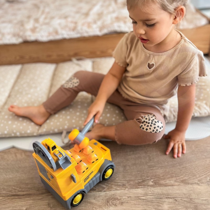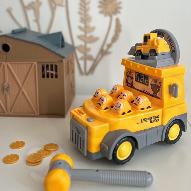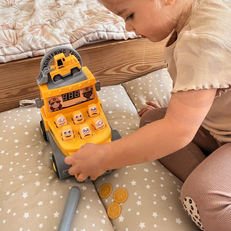 Budowlana ciężarówka 2w1 marki Woopie to wyjątkowa zabawka, która zapewni dzieciom godziny kreatywnej, aktywnej i emocjonującej rozrywki. To połączenie dynamicznej gry zręcznościowej „Uderz kreta” z klasycznym autkiem do jeżdżenia. Wystarczy wrzucić monetę, chwycić miękki młoteczek i zdobywać punkty, trafiając w „krety” w postaci małych żółtych autek! Kolorowy design, wytrzymała konstrukcja i wielofunkcyjność sprawiają, że zabawka przyciągnie uwagę każdego małego strażaka.