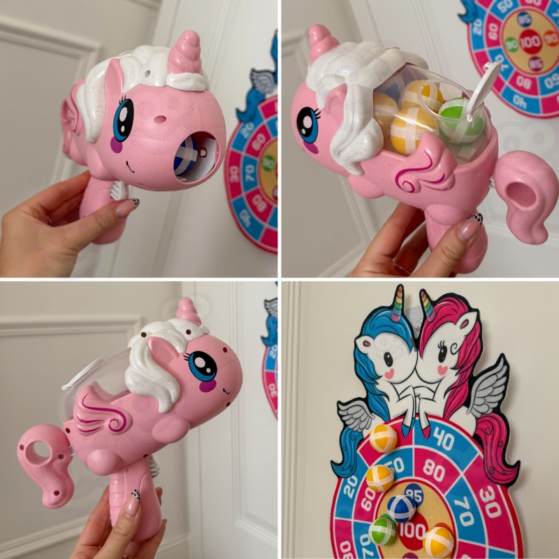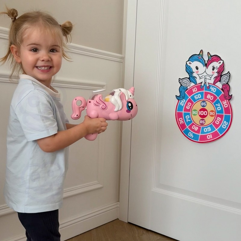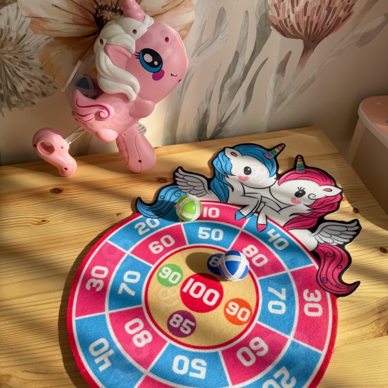 Wkrocz do magicznego świata rywalizacji i zręczności z grą zręcznościową od marki Woopie! Ten uroczy zestaw pozwoli Twojemu dziecku rozwijać celność i koordynację w bezpieczny i fascynujący sposób. Wyrzutnia w kształcie uroczego jednorożca strzela specjalnymi kulkami, które magicznie przyklejają się do tarczy dzięki rzepom. Idealna do zabawy w domu i na zewnątrz, zapewniająca godziny wciągającej rozrywki i pomagająca w doskonaleniu precyzji!
