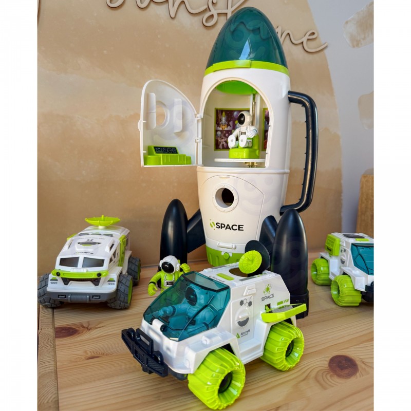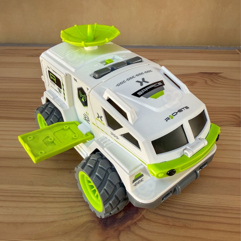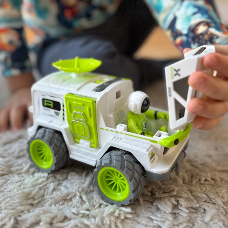 Pozwól dziecku wkroczyć w fascynujący świat międzygwiezdnych podróży z Dużym Łazikiem kosmicznym marki Woopie – to nie tylko zabawka, ale prawdziwe centrum dowodzenia każdej dziecięcej misji kosmicznej! Ten niezwykle szczegółowo zaprojektowany pojazd przeniesie małych odkrywców wprost na powierzchnię obcej planety, gdzie mogą zbierać dane, badać teren i kontaktować się z bazą dzięki realistycznym elementom, takim jak obracający się radar, otwierana szyba czołowa czy interaktywne światła i dźwięki. Zaprojektowany z myślą o bezpiecznej i kreatywnej zabawie, pojazd został wykonany z trwałego tworzywa ABS, które zapewnia odporność na uderzenia i intensywną eksploatację przez małe rączki. Szerokie, gumowane koła o terenowym bieżniku pozwalają przemierzać każdy pokój, ogród czy plac zabaw, nadając zabawie zupełnie nowy wymiar. Naciśnięcie przycisku uruchamia efekty świetlne i dźwiękowe, dzięki którym dzieci mogą poczuć się jak prawdziwi astronauci w trakcie niebezpiecznej misji eksploracyjnej. Co więcej, obrót kół pojazdu automatycznie wprawia w ruch talerz satelity umieszczony na dachu – to mechaniczne rozwiązanie zachwyca dzieci i rozwija ich ciekawość działania urządzeń. Przednie światła pojazdu doświetlą zacienioną przestrzeń. W zestawie znajduje się również zielona figurka astronauty, która idealnie mieści się w kokpicie pojazdu. Ta zabawka to znakomite narzędzie do wspierania rozwoju wyobraźni, zdolności poznawczych i zainteresowań naukowych – a wszystko to przez beztroską, kreatywną zabawę!